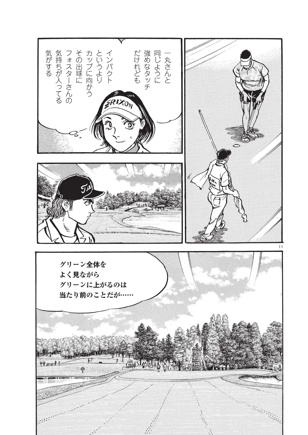 【第74巻あらすじ】ホーライワールドチャンピオンズに出場した鳴海一丸。同組には因縁のライバル御園聖志が鳴海を倒すために送り込んだ刺客、元米国軍人のフォスターが。女性ながらに戦場で狙撃手の観測手の任務に就いていたフォスターは、軍に入る前はトップアマとして活躍していた腕前。互いを強く意識する鳴海とフォスター。予選ラウンドは、まるでマッチプレーの様相を見せていた。
