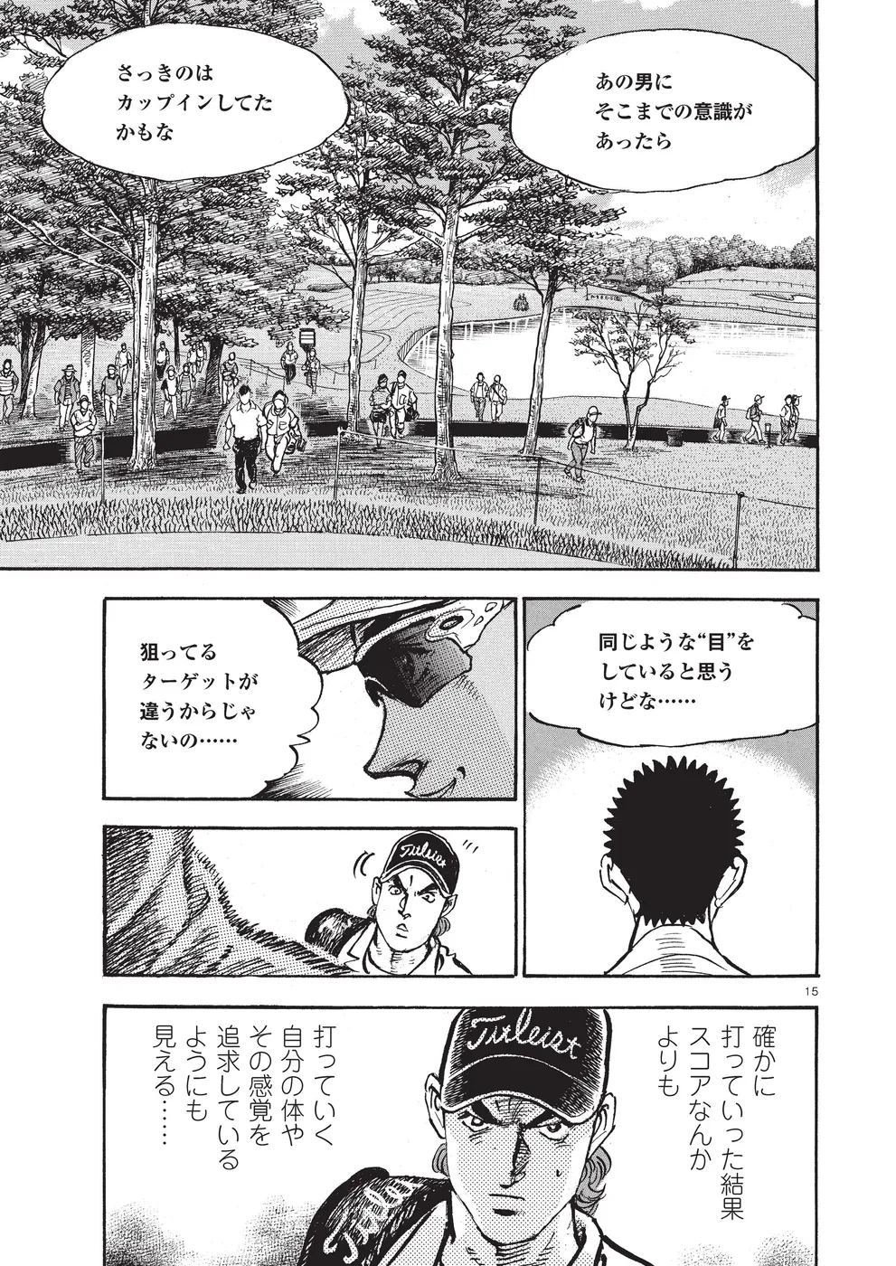 【第74巻あらすじ】ホーライワールドチャンピオンズに出場した鳴海一丸。同組には因縁のライバル御園聖志が鳴海を倒すために送り込んだ刺客、元米国軍人のフォスターが。女性ながらに戦場で狙撃手の観測手の任務に就いていたフォスターは、軍に入る前はトップアマとして活躍していた腕前。互いを強く意識する鳴海とフォスター。予選ラウンドは、まるでマッチプレーの様相を見せていた。