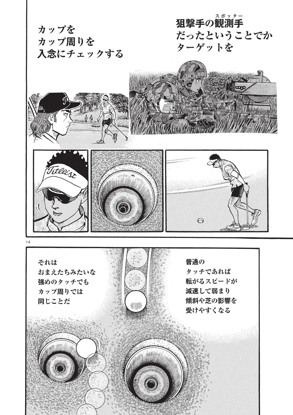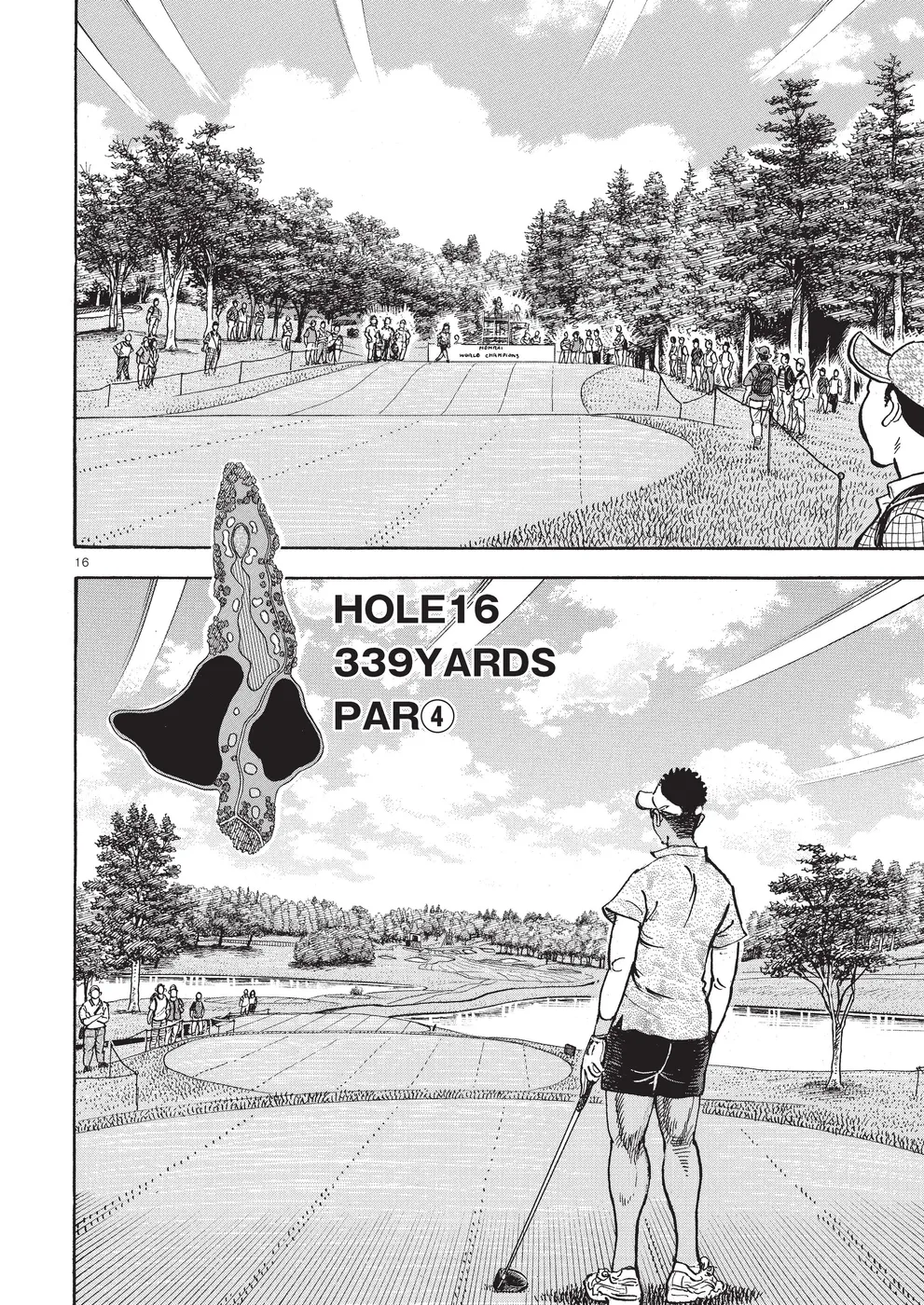 【第74巻あらすじ】ホーライワールドチャンピオンズに出場した鳴海一丸。同組には因縁のライバル御園聖志が鳴海を倒すために送り込んだ刺客、元米国軍人のフォスターが。女性ながらに戦場で狙撃手の観測手の任務に就いていたフォスターは、軍に入る前はトップアマとして活躍していた腕前。互いを強く意識する鳴海とフォスター。予選ラウンドは、まるでマッチプレーの様相を見せていた。