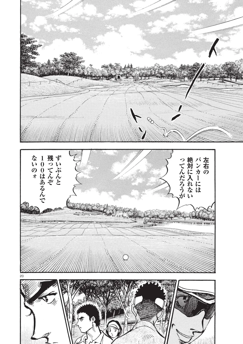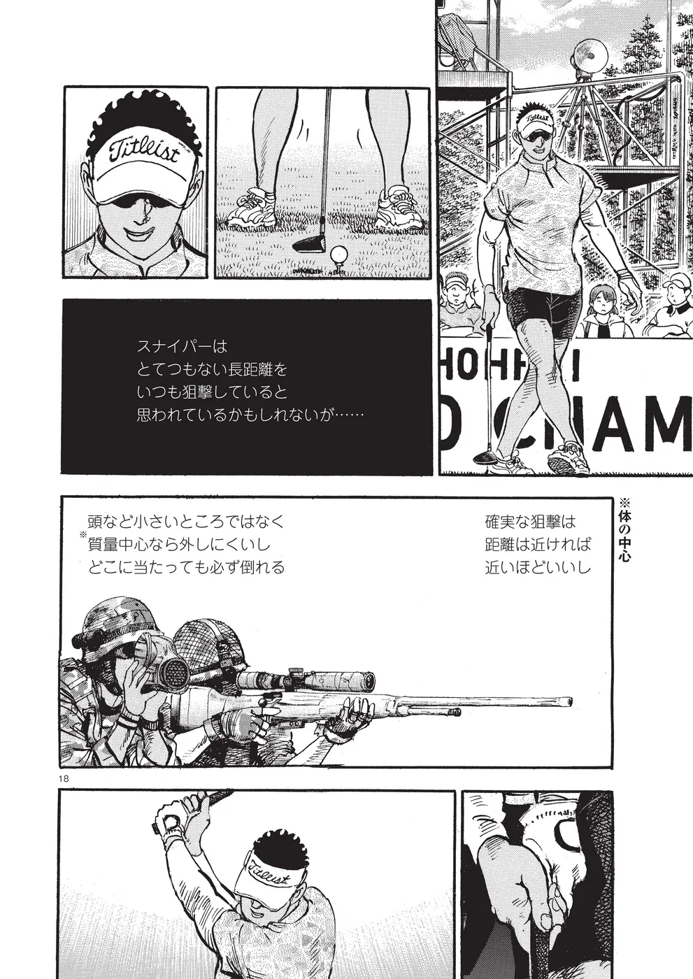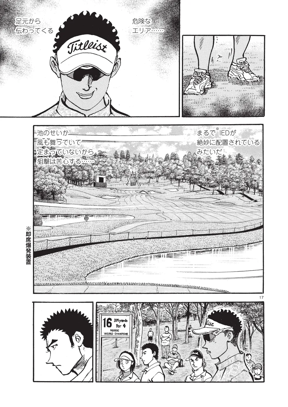 【第74巻あらすじ】ホーライワールドチャンピオンズに出場した鳴海一丸。同組には因縁のライバル御園聖志が鳴海を倒すために送り込んだ刺客、元米国軍人のフォスターが。女性ながらに戦場で狙撃手の観測手の任務に就いていたフォスターは、軍に入る前はトップアマとして活躍していた腕前。互いを強く意識する鳴海とフォスター。予選ラウンドは、まるでマッチプレーの様相を見せていた。