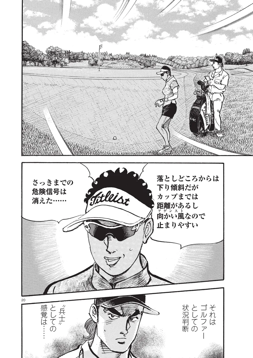【第74巻あらすじ】ホーライワールドチャンピオンズに出場した鳴海一丸。同組には因縁のライバル御園聖志が鳴海を倒すために送り込んだ刺客、元米国軍人のフォスターが。女性ながらに戦場で狙撃手の観測手の任務に就いていたフォスターは、軍に入る前はトップアマとして活躍していた腕前。互いを強く意識する鳴海とフォスター。予選ラウンドは、まるでマッチプレーの様相を見せていた。