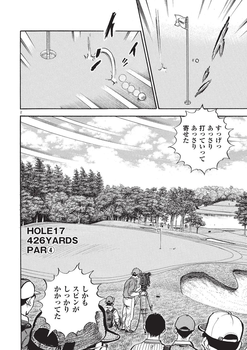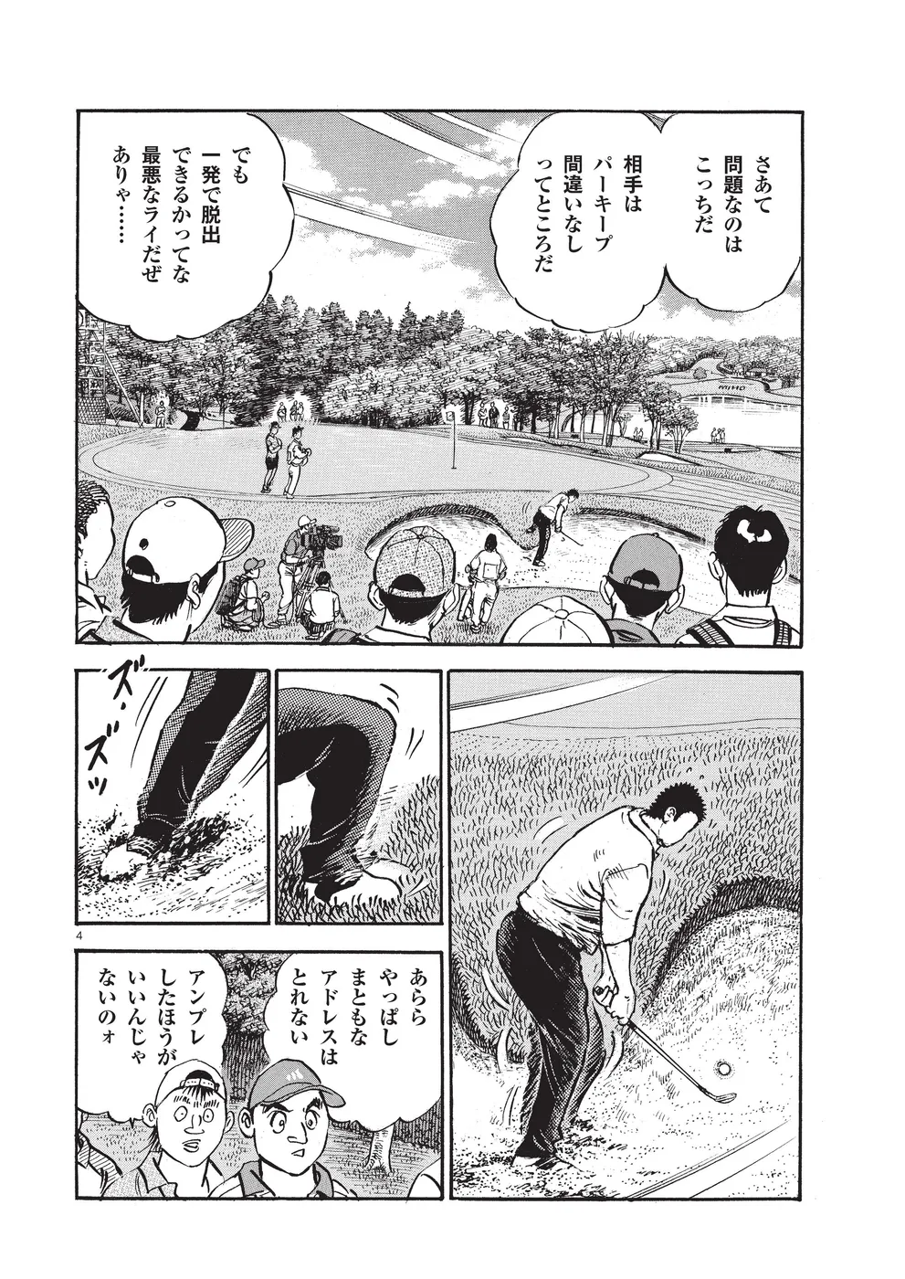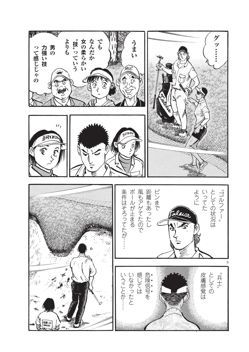 【第74巻あらすじ】ホーライワールドチャンピオンズに出場した鳴海一丸。同組には因縁のライバル御園聖志が鳴海を倒すために送り込んだ刺客、元米国軍人のフォスターが。女性ながらに戦場で狙撃手の観測手の任務に就いていたフォスターは、軍に入る前はトップアマとして活躍していた腕前。互いを強く意識する鳴海とフォスター。予選ラウンドは、まるでマッチプレーの様相を見せていた。