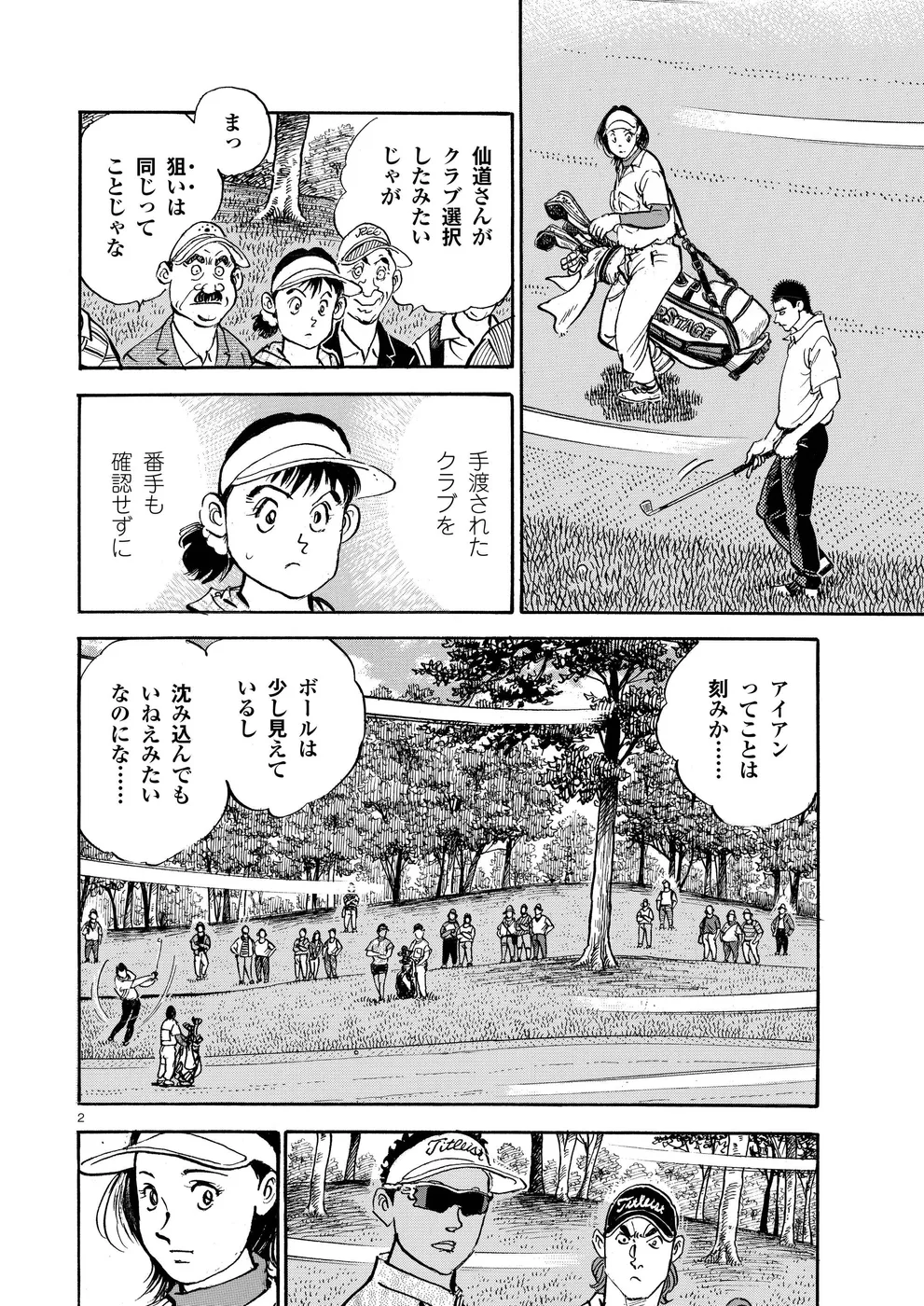 【第75巻あらすじ】ホーライ・ワールド・チャンピオンズ2日目、女子アマチュアゴルファーのロレーナ・フォスターと鳴海一丸の戦いは、マッチプレーの様相を呈する。男子に負けない飛距離を武器に一丸をリードするプレーを見せていたフォスターだったが、米国軍人時代の体験からくる心的外傷後ストレス障害により、微妙にリズムを崩し始めていた。