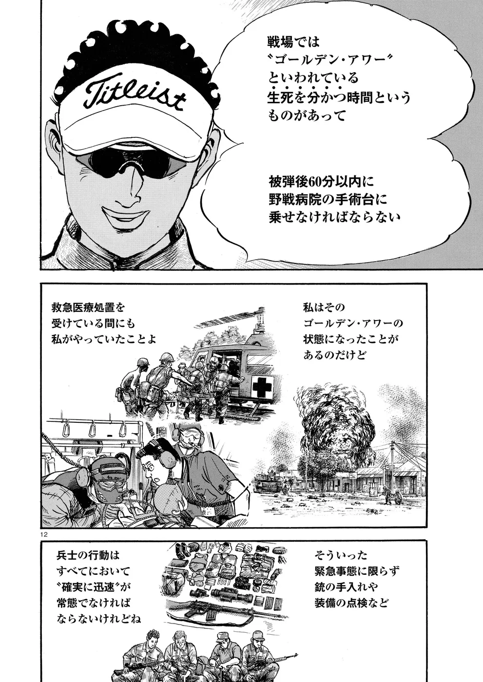 【第75巻あらすじ】ホーライ・ワールド・チャンピオンズ2日目、女子アマチュアゴルファーのロレーナ・フォスターと鳴海一丸の戦いは、マッチプレーの様相を呈する。男子に負けない飛距離を武器に一丸をリードするプレーを見せていたフォスターだったが、米国軍人時代の体験からくる心的外傷後ストレス障害により、微妙にリズムを崩し始めていた。