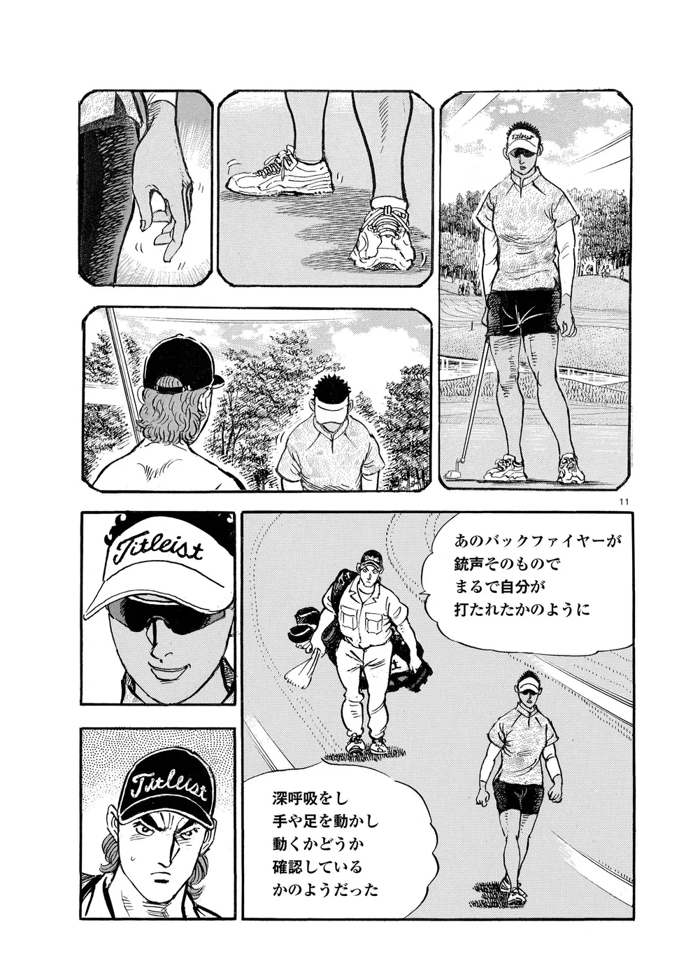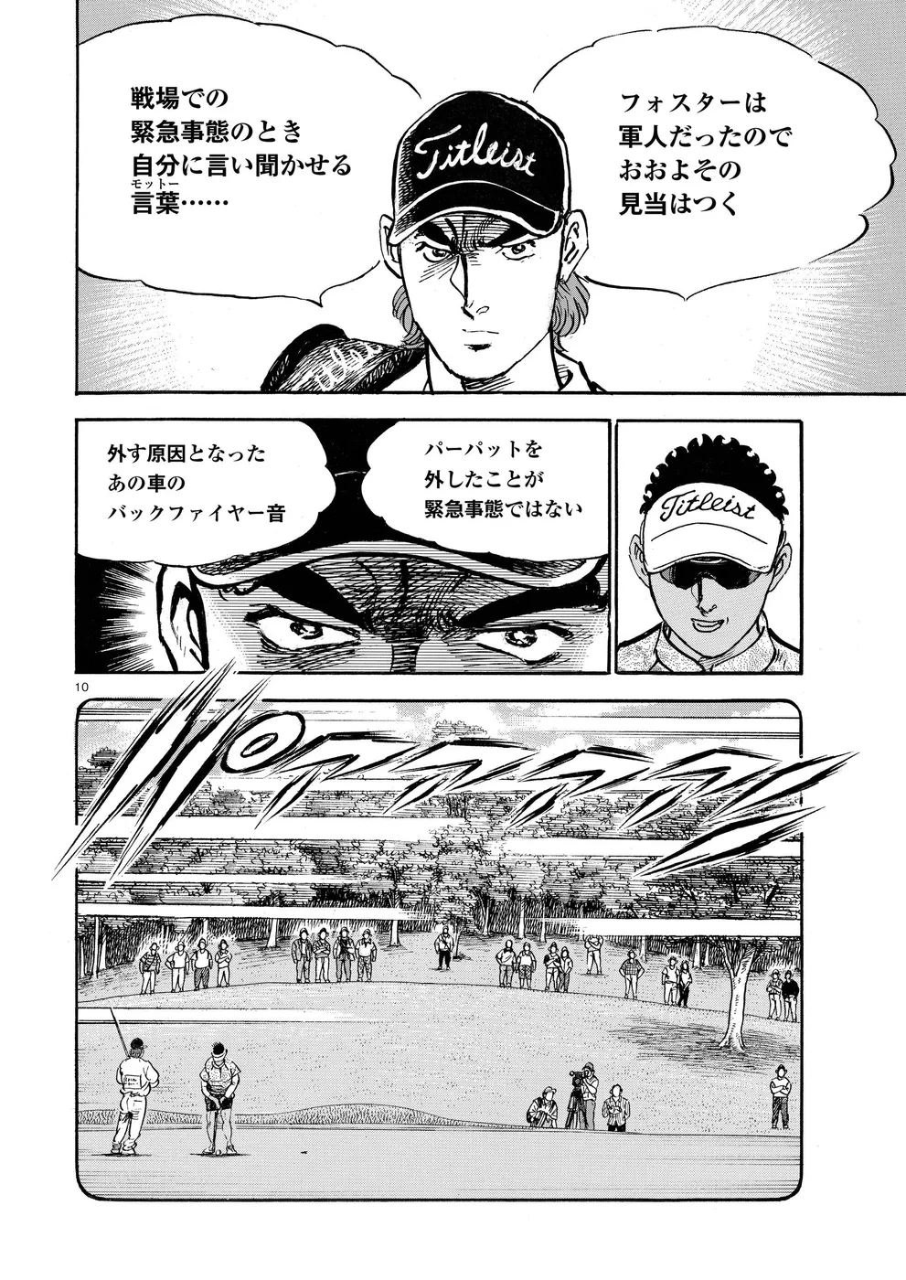 【第75巻あらすじ】ホーライ・ワールド・チャンピオンズ2日目、女子アマチュアゴルファーのロレーナ・フォスターと鳴海一丸の戦いは、マッチプレーの様相を呈する。男子に負けない飛距離を武器に一丸をリードするプレーを見せていたフォスターだったが、米国軍人時代の体験からくる心的外傷後ストレス障害により、微妙にリズムを崩し始めていた。