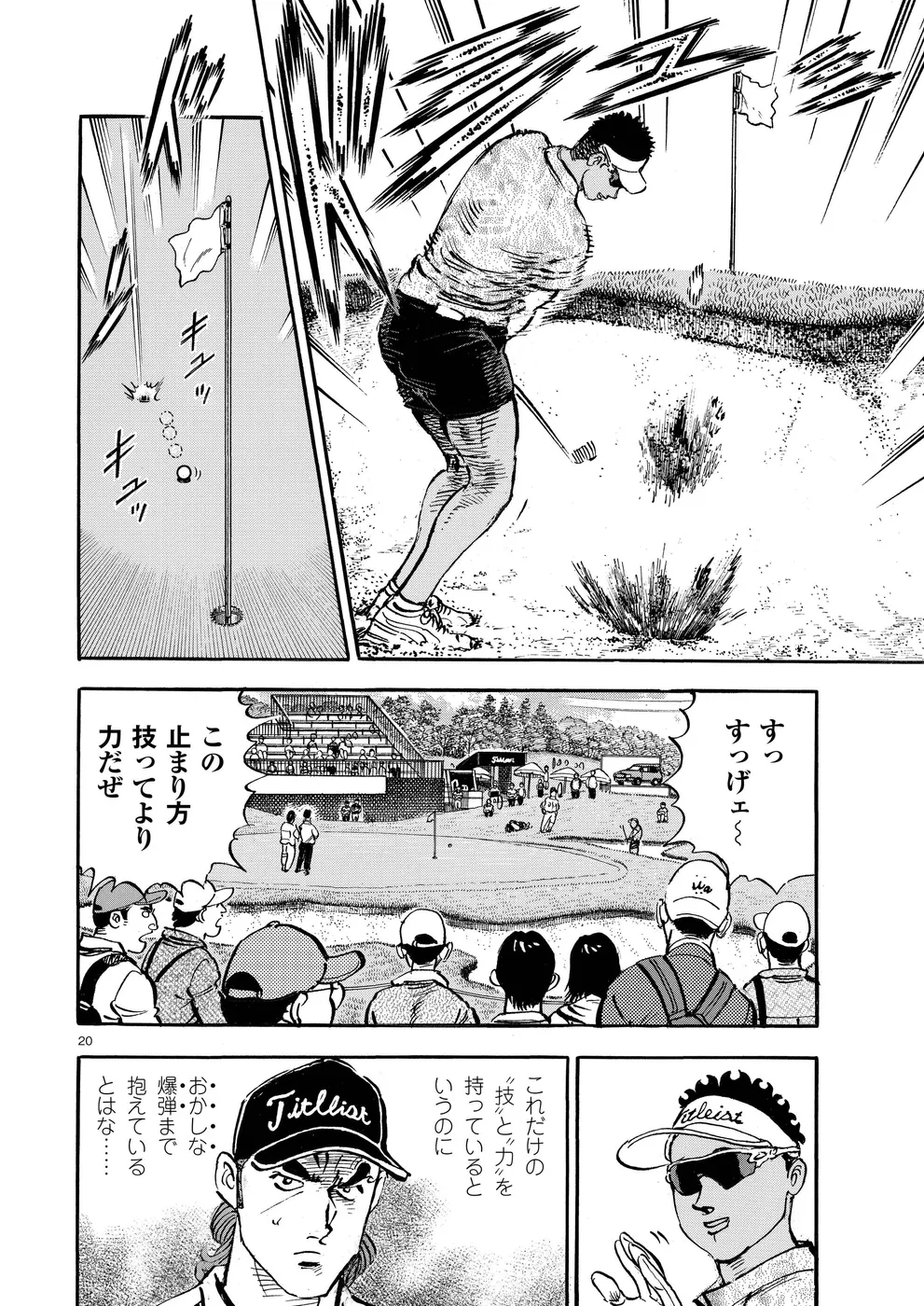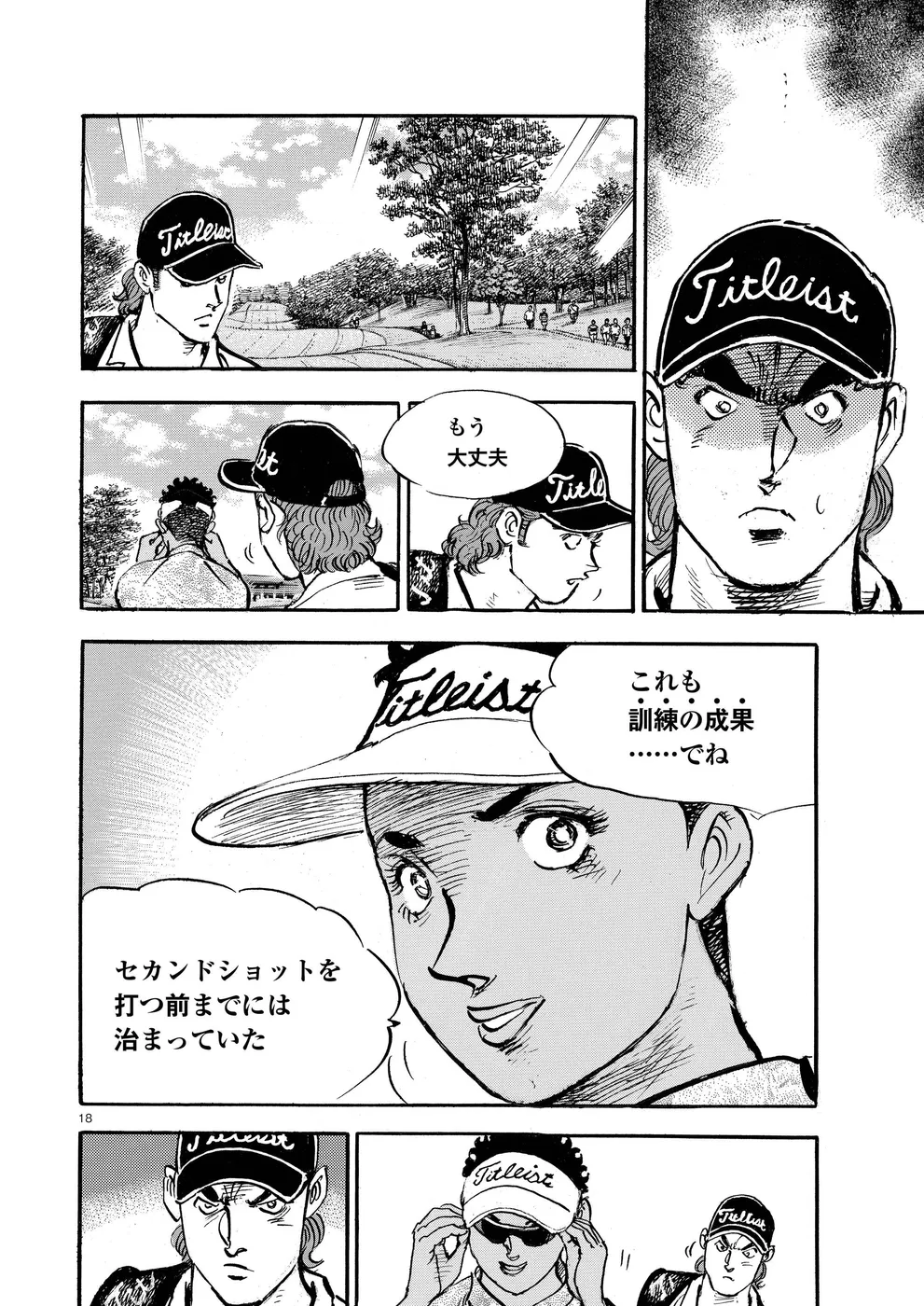 【第75巻あらすじ】ホーライ・ワールド・チャンピオンズ2日目、女子アマチュアゴルファーのロレーナ・フォスターと鳴海一丸の戦いは、マッチプレーの様相を呈する。男子に負けない飛距離を武器に一丸をリードするプレーを見せていたフォスターだったが、米国軍人時代の体験からくる心的外傷後ストレス障害により、微妙にリズムを崩し始めていた。