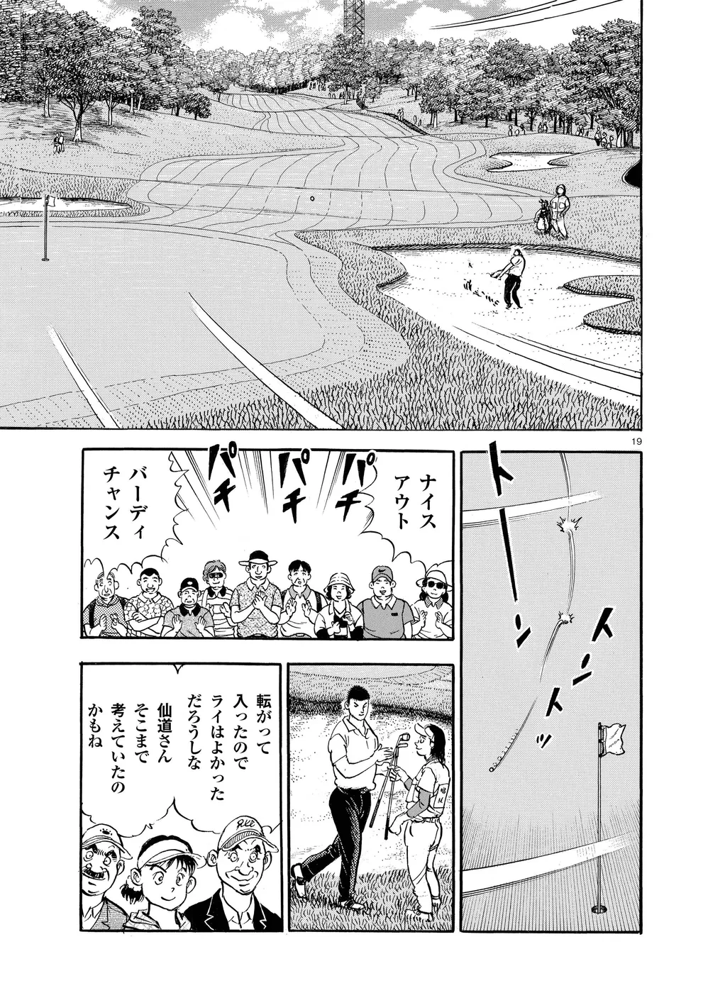 【第75巻あらすじ】ホーライ・ワールド・チャンピオンズ2日目、女子アマチュアゴルファーのロレーナ・フォスターと鳴海一丸の戦いは、マッチプレーの様相を呈する。男子に負けない飛距離を武器に一丸をリードするプレーを見せていたフォスターだったが、米国軍人時代の体験からくる心的外傷後ストレス障害により、微妙にリズムを崩し始めていた。