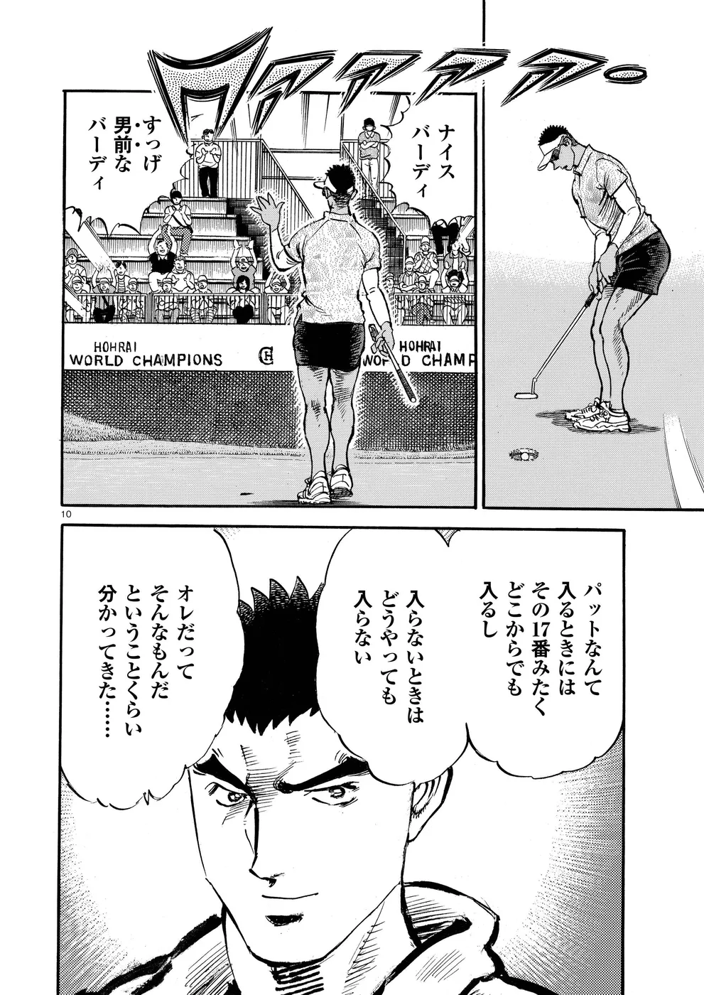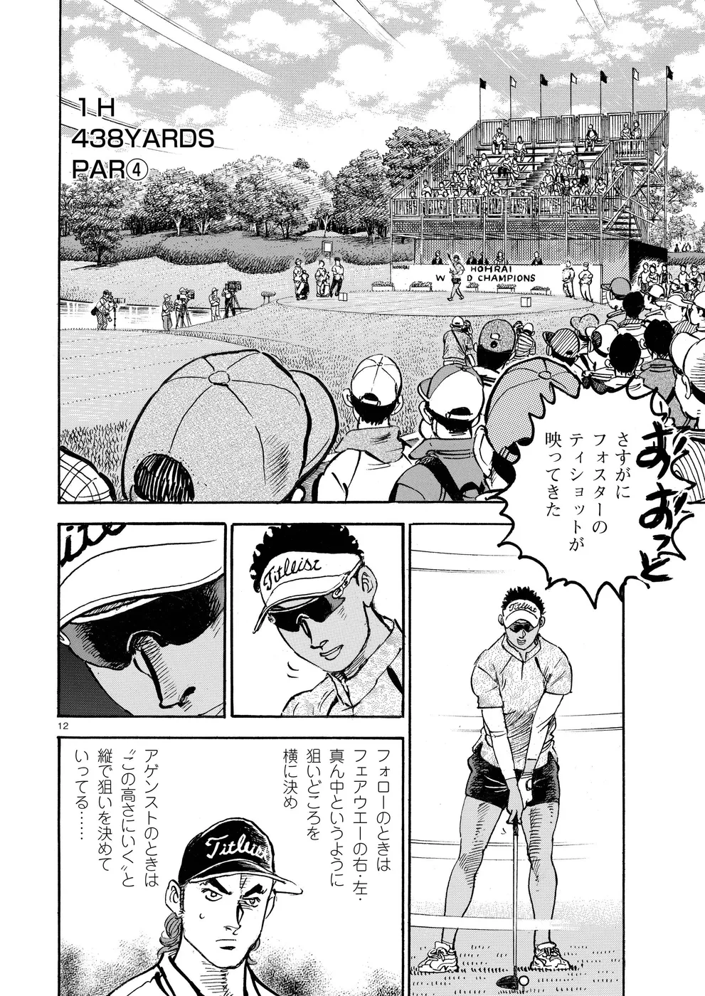 【第75巻あらすじ】ホーライ・ワールド・チャンピオンズ2日目、女子アマチュアゴルファーのロレーナ・フォスターと鳴海一丸の戦いは、マッチプレーの様相を呈する。男子に負けない飛距離を武器に一丸をリードするプレーを見せていたフォスターだったが、米国軍人時代の体験からくる心的外傷後ストレス障害により、微妙にリズムを崩し始めていた。