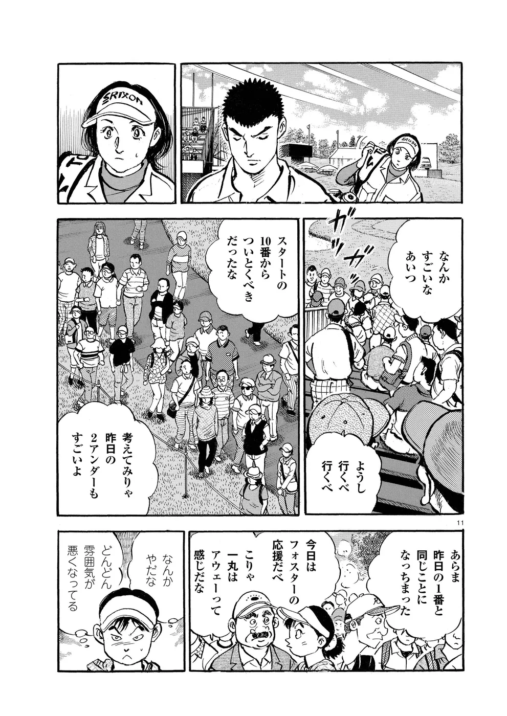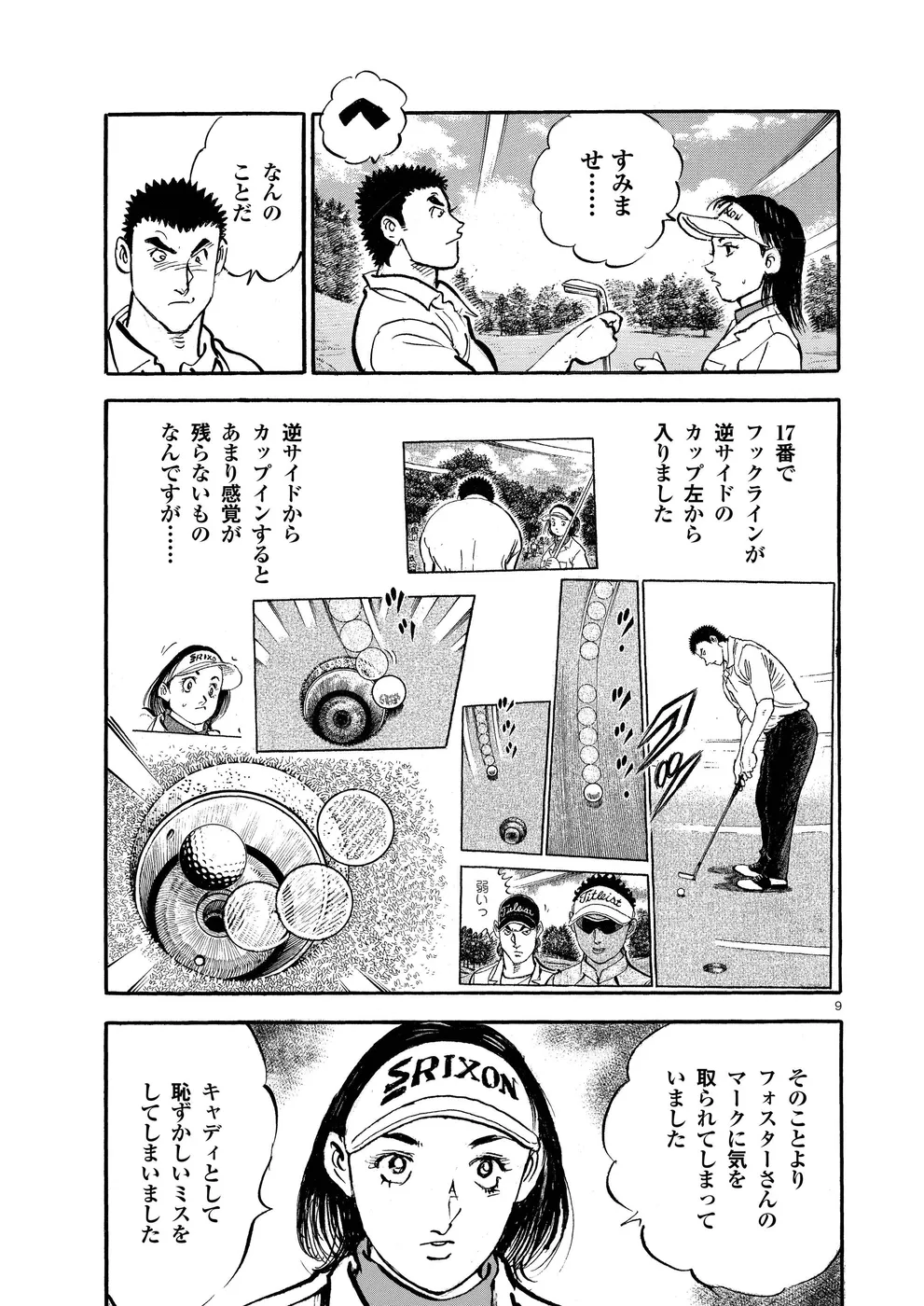 【第75巻あらすじ】ホーライ・ワールド・チャンピオンズ2日目、女子アマチュアゴルファーのロレーナ・フォスターと鳴海一丸の戦いは、マッチプレーの様相を呈する。男子に負けない飛距離を武器に一丸をリードするプレーを見せていたフォスターだったが、米国軍人時代の体験からくる心的外傷後ストレス障害により、微妙にリズムを崩し始めていた。