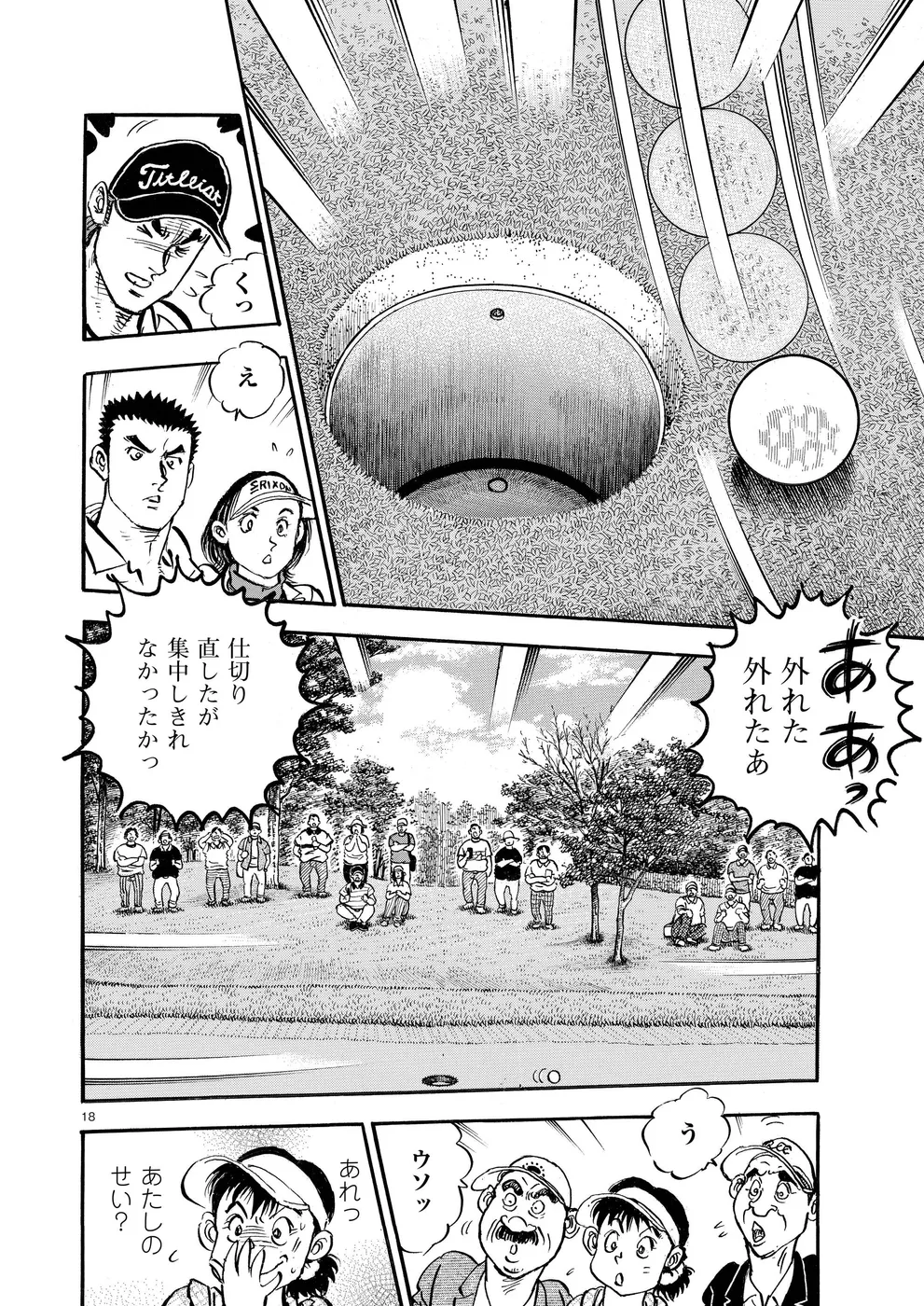 【第75巻あらすじ】ホーライ・ワールド・チャンピオンズ2日目、女子アマチュアゴルファーのロレーナ・フォスターと鳴海一丸の戦いは、マッチプレーの様相を呈する。男子に負けない飛距離を武器に一丸をリードするプレーを見せていたフォスターだったが、米国軍人時代の体験からくる心的外傷後ストレス障害により、微妙にリズムを崩し始めていた。