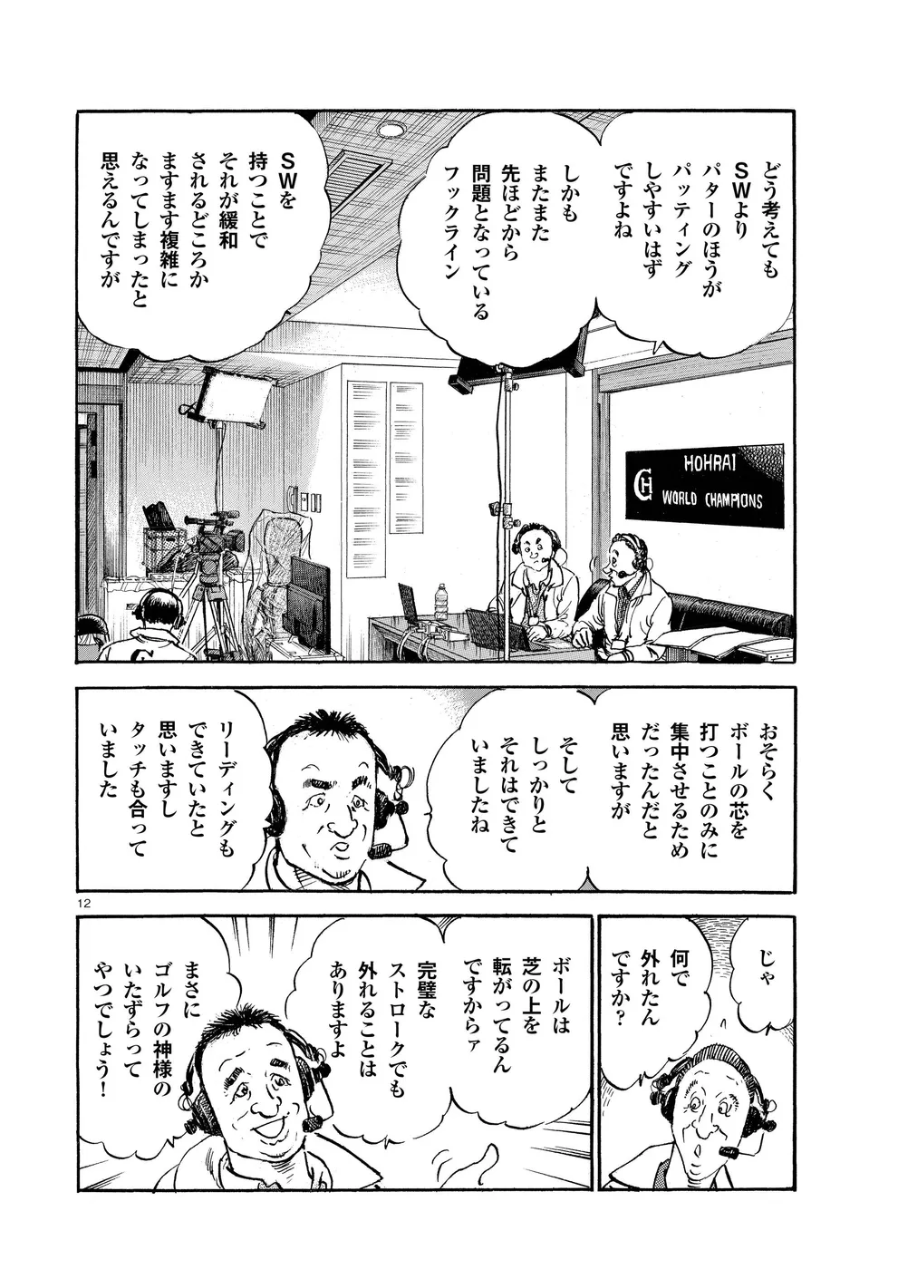 【第75巻あらすじ】ホーライ・ワールド・チャンピオンズ2日目、女子アマチュアゴルファーのロレーナ・フォスターと鳴海一丸の戦いは、マッチプレーの様相を呈する。男子に負けない飛距離を武器に一丸をリードするプレーを見せていたフォスターだったが、米国軍人時代の体験からくる心的外傷後ストレス障害により、微妙にリズムを崩し始めていた。