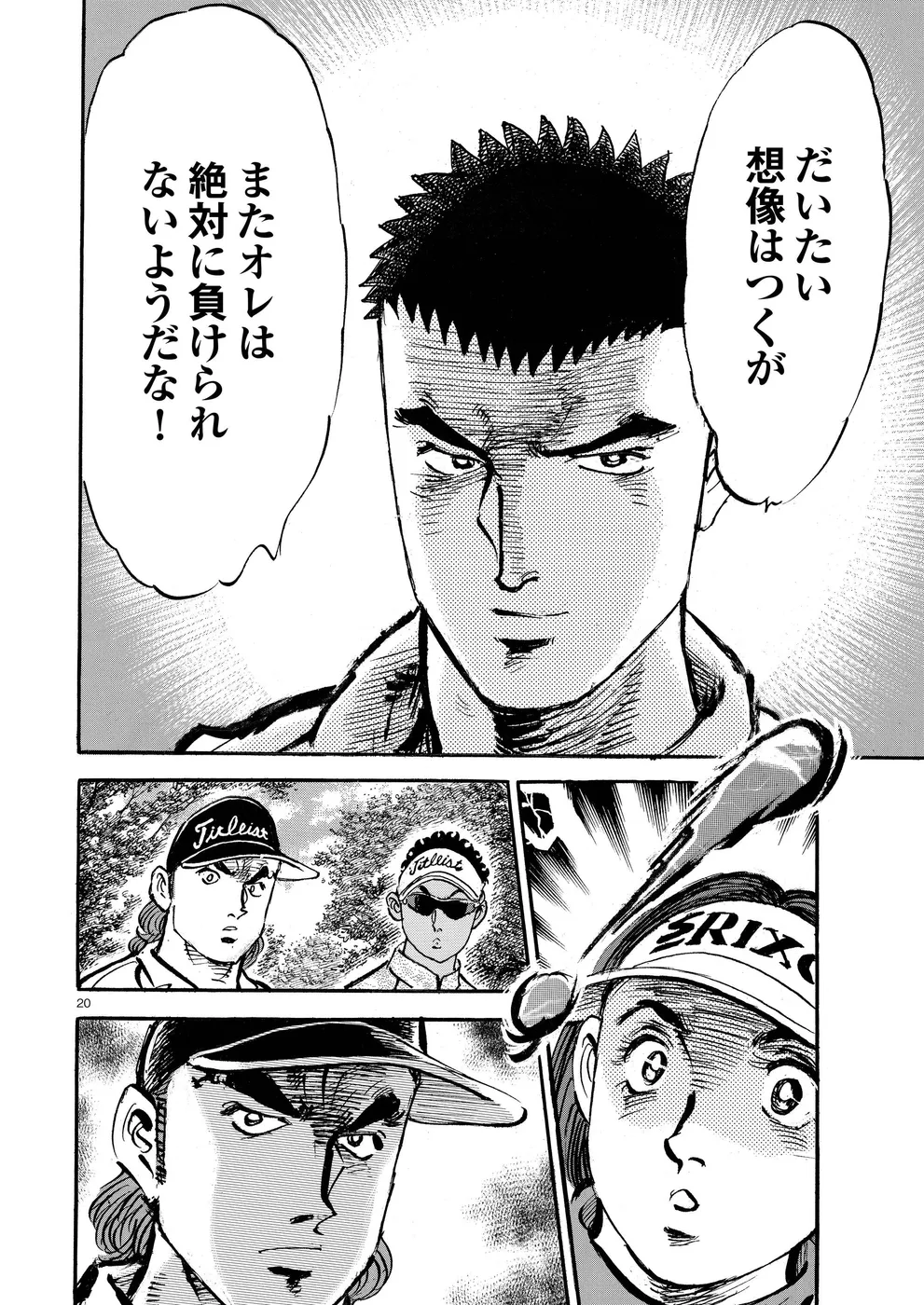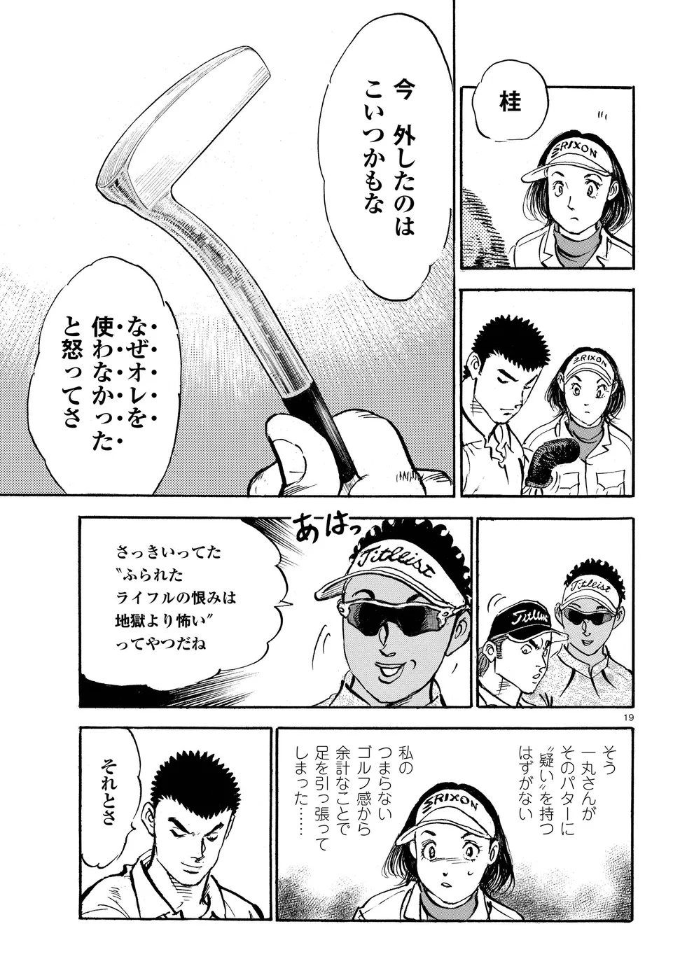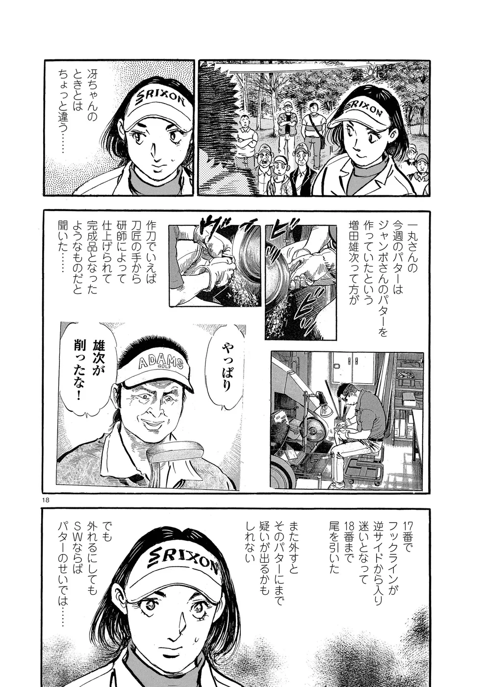 【第75巻あらすじ】ホーライ・ワールド・チャンピオンズ2日目、女子アマチュアゴルファーのロレーナ・フォスターと鳴海一丸の戦いは、マッチプレーの様相を呈する。男子に負けない飛距離を武器に一丸をリードするプレーを見せていたフォスターだったが、米国軍人時代の体験からくる心的外傷後ストレス障害により、微妙にリズムを崩し始めていた。