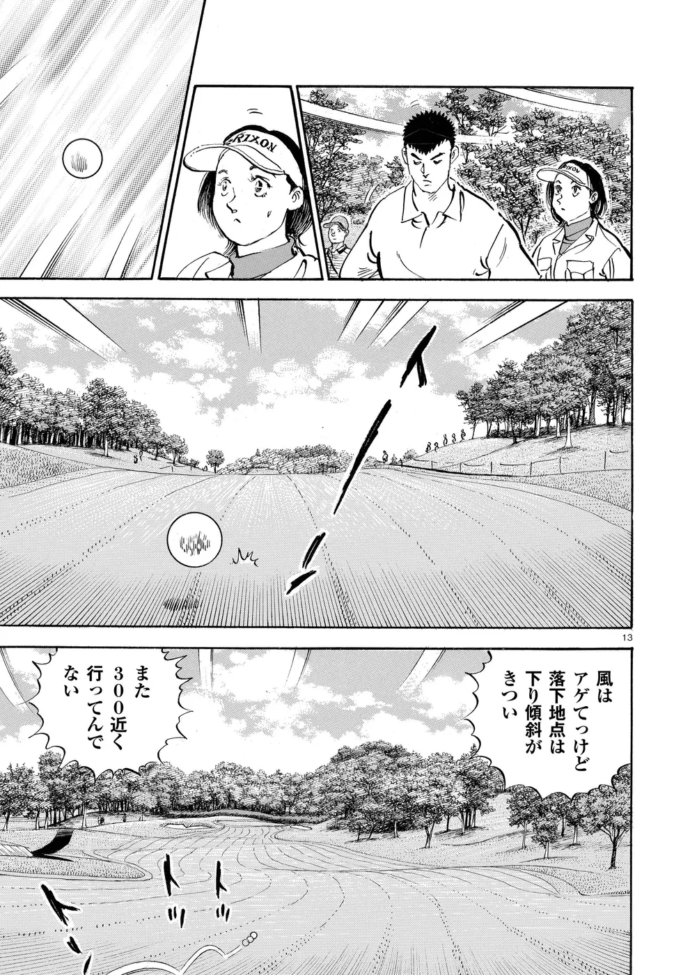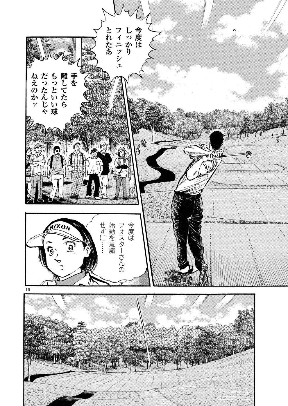 【第75巻あらすじ】ホーライ・ワールド・チャンピオンズ2日目、女子アマチュアゴルファーのロレーナ・フォスターと鳴海一丸の戦いは、マッチプレーの様相を呈する。男子に負けない飛距離を武器に一丸をリードするプレーを見せていたフォスターだったが、米国軍人時代の体験からくる心的外傷後ストレス障害により、微妙にリズムを崩し始めていた。