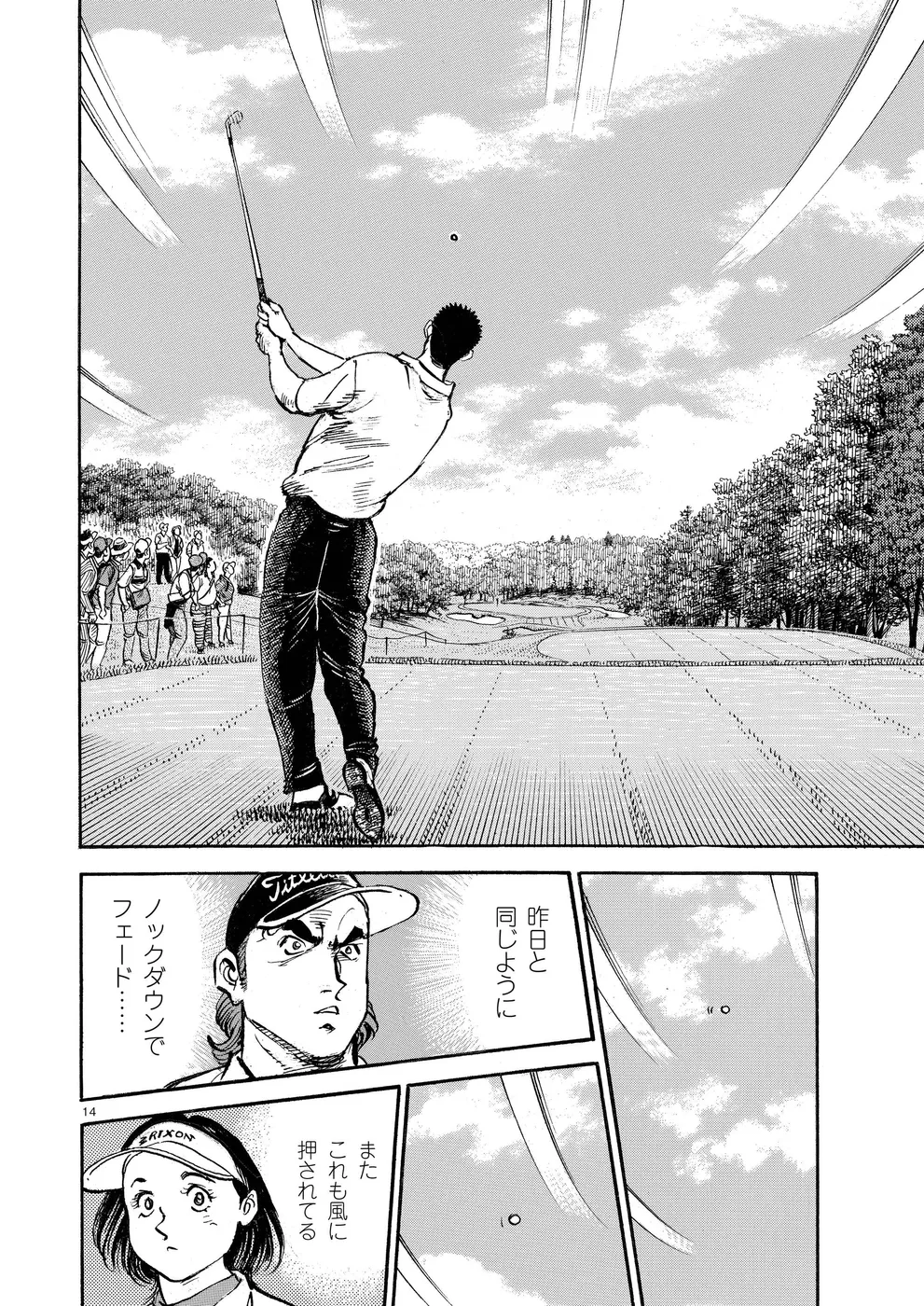 【第76巻あらすじ】ホーライワールドチャンピオンズで鳴海一丸と同組を回る米国人女子アマ・フォスターは、米軍で狙撃観測種を任じられていた帰還兵だった。フォスターと鳴海は、マッチプレーの様相を見せる激しい戦いを展開。だが、車の大きなクラクションの音を聞いた後から、フォスターのショットが乱れ始めた。フォスターは心的外傷後ストレス障害(PTSD)を抱えていた…。