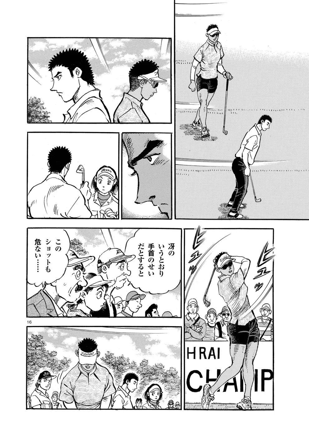 【第76巻あらすじ】ホーライワールドチャンピオンズで鳴海一丸と同組を回る米国人女子アマ・フォスターは、米軍で狙撃観測種を任じられていた帰還兵だった。フォスターと鳴海は、マッチプレーの様相を見せる激しい戦いを展開。だが、車の大きなクラクションの音を聞いた後から、フォスターのショットが乱れ始めた。フォスターは心的外傷後ストレス障害(PTSD)を抱えていた…。