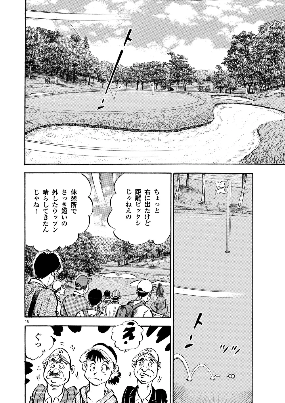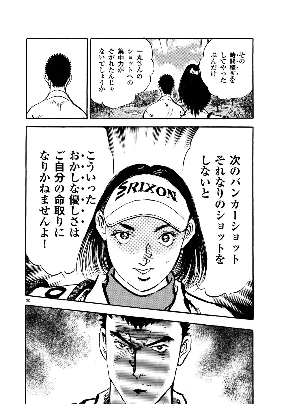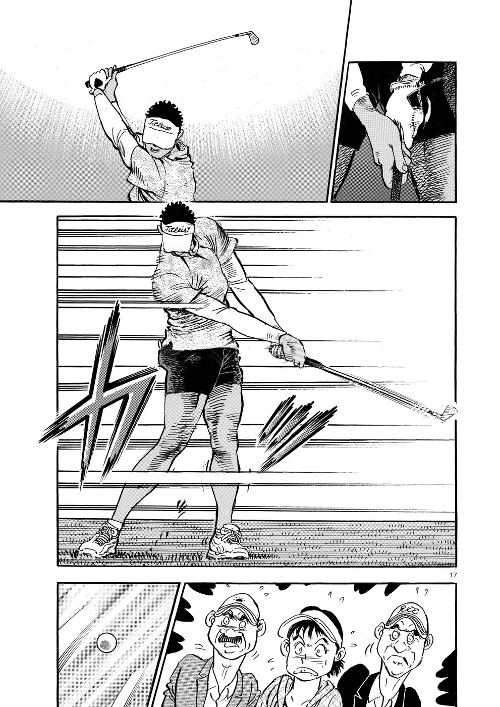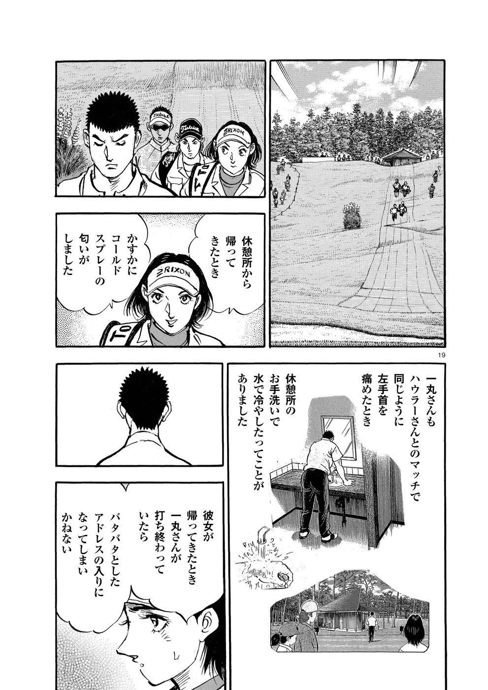 【第76巻あらすじ】ホーライワールドチャンピオンズで鳴海一丸と同組を回る米国人女子アマ・フォスターは、米軍で狙撃観測種を任じられていた帰還兵だった。フォスターと鳴海は、マッチプレーの様相を見せる激しい戦いを展開。だが、車の大きなクラクションの音を聞いた後から、フォスターのショットが乱れ始めた。フォスターは心的外傷後ストレス障害(PTSD)を抱えていた…。