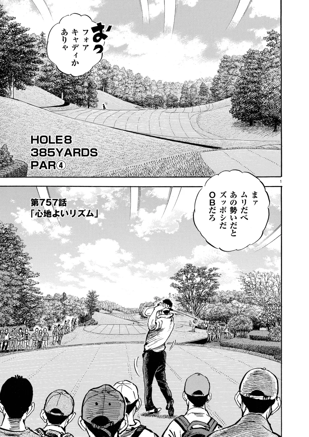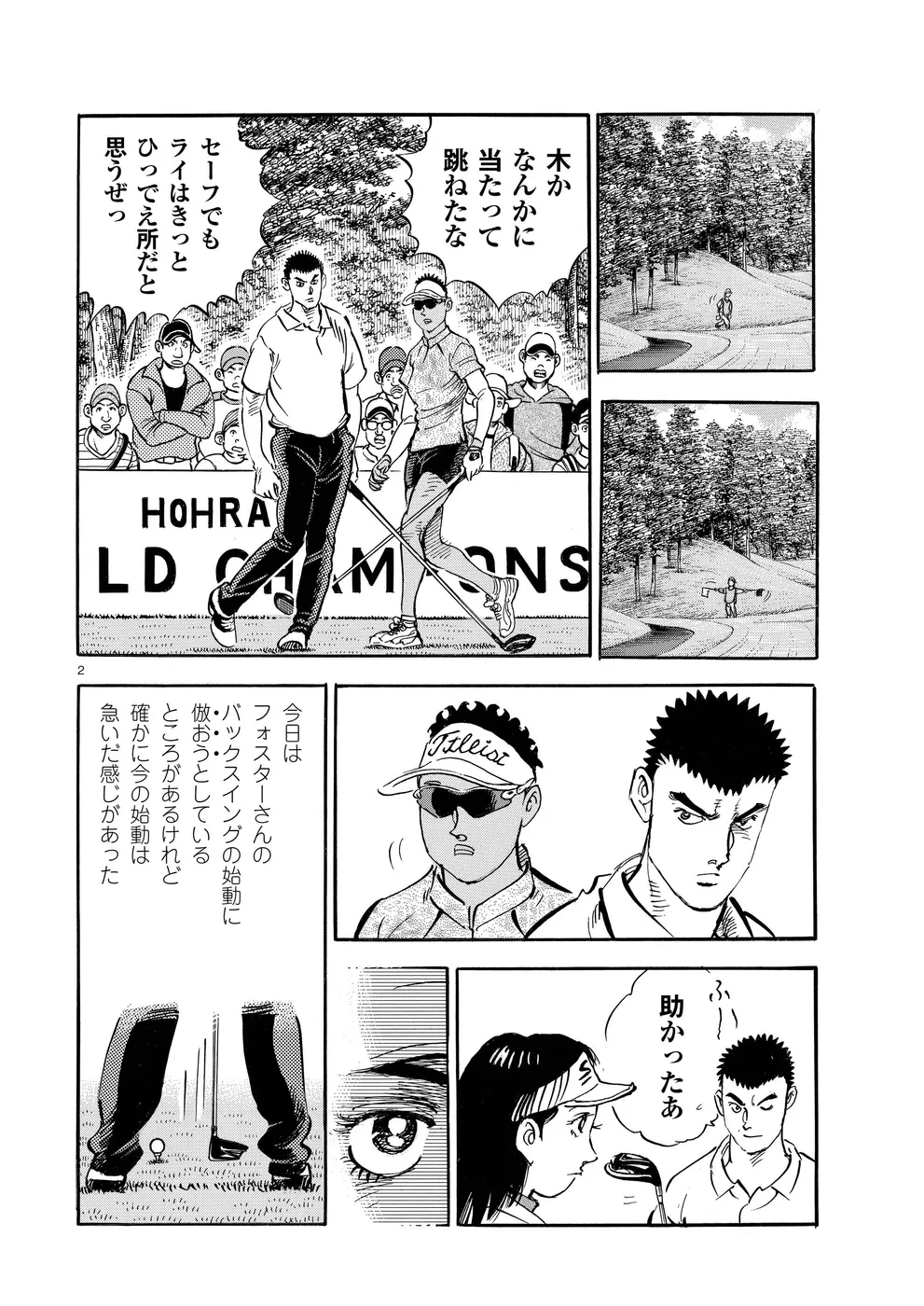 【第76巻あらすじ】ホーライワールドチャンピオンズで鳴海一丸と同組を回る米国人女子アマ・フォスターは、米軍で狙撃観測種を任じられていた帰還兵だった。フォスターと鳴海は、マッチプレーの様相を見せる激しい戦いを展開。だが、車の大きなクラクションの音を聞いた後から、フォスターのショットが乱れ始めた。フォスターは心的外傷後ストレス障害(PTSD)を抱えていた…。