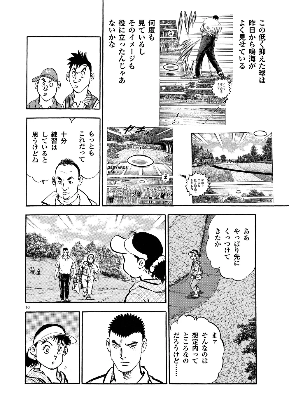 【第76巻あらすじ】ホーライワールドチャンピオンズで鳴海一丸と同組を回る米国人女子アマ・フォスターは、米軍で狙撃観測種を任じられていた帰還兵だった。フォスターと鳴海は、マッチプレーの様相を見せる激しい戦いを展開。だが、車の大きなクラクションの音を聞いた後から、フォスターのショットが乱れ始めた。フォスターは心的外傷後ストレス障害(PTSD)を抱えていた…。