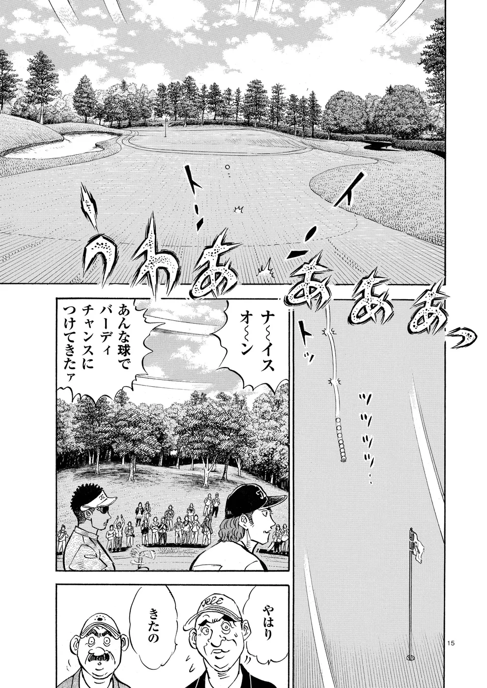 【第76巻あらすじ】ホーライワールドチャンピオンズで鳴海一丸と同組を回る米国人女子アマ・フォスターは、米軍で狙撃観測種を任じられていた帰還兵だった。フォスターと鳴海は、マッチプレーの様相を見せる激しい戦いを展開。だが、車の大きなクラクションの音を聞いた後から、フォスターのショットが乱れ始めた。フォスターは心的外傷後ストレス障害(PTSD)を抱えていた…。