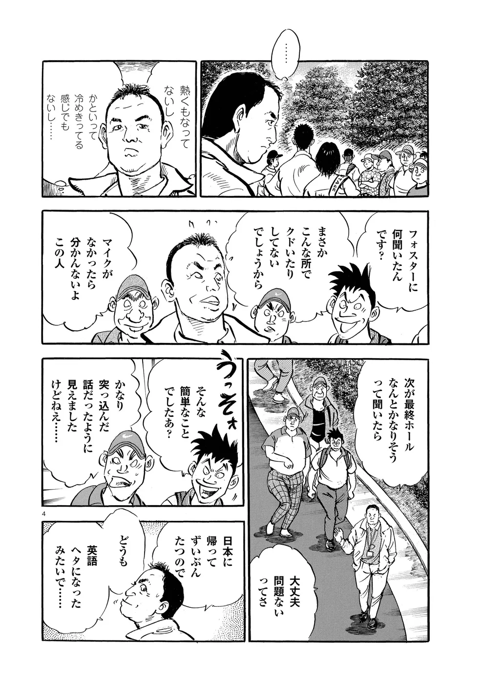【第76巻あらすじ】ホーライワールドチャンピオンズで鳴海一丸と同組を回る米国人女子アマ・フォスターは、米軍で狙撃観測種を任じられていた帰還兵だった。フォスターと鳴海は、マッチプレーの様相を見せる激しい戦いを展開。だが、車の大きなクラクションの音を聞いた後から、フォスターのショットが乱れ始めた。フォスターは心的外傷後ストレス障害(PTSD)を抱えていた…。