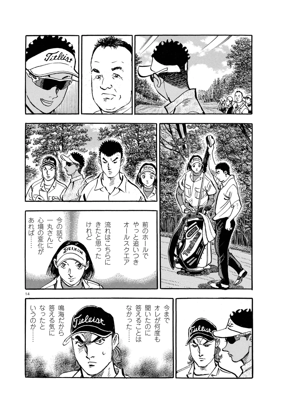 【第76巻あらすじ】ホーライワールドチャンピオンズで鳴海一丸と同組を回る米国人女子アマ・フォスターは、米軍で狙撃観測種を任じられていた帰還兵だった。フォスターと鳴海は、マッチプレーの様相を見せる激しい戦いを展開。だが、車の大きなクラクションの音を聞いた後から、フォスターのショットが乱れ始めた。フォスターは心的外傷後ストレス障害(PTSD)を抱えていた…。