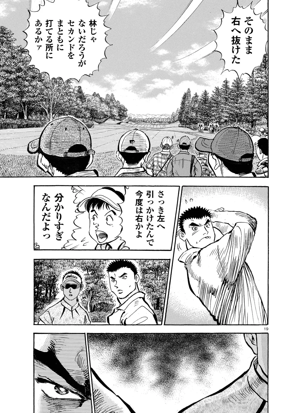 【第76巻あらすじ】ホーライワールドチャンピオンズで鳴海一丸と同組を回る米国人女子アマ・フォスターは、米軍で狙撃観測種を任じられていた帰還兵だった。フォスターと鳴海は、マッチプレーの様相を見せる激しい戦いを展開。だが、車の大きなクラクションの音を聞いた後から、フォスターのショットが乱れ始めた。フォスターは心的外傷後ストレス障害(PTSD)を抱えていた…。