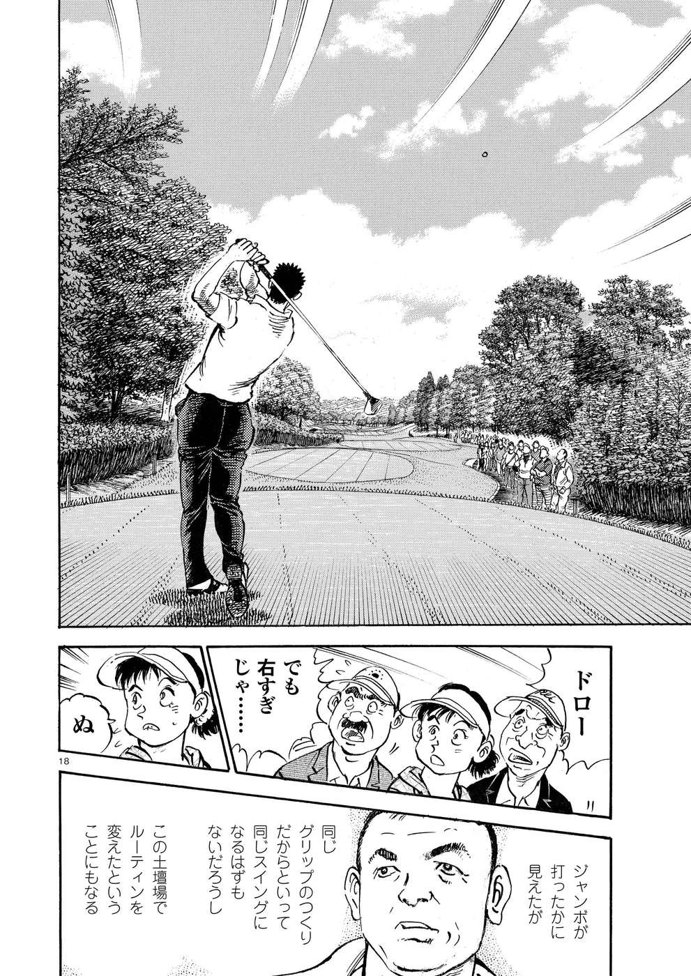 【第76巻あらすじ】ホーライワールドチャンピオンズで鳴海一丸と同組を回る米国人女子アマ・フォスターは、米軍で狙撃観測種を任じられていた帰還兵だった。フォスターと鳴海は、マッチプレーの様相を見せる激しい戦いを展開。だが、車の大きなクラクションの音を聞いた後から、フォスターのショットが乱れ始めた。フォスターは心的外傷後ストレス障害(PTSD)を抱えていた…。
