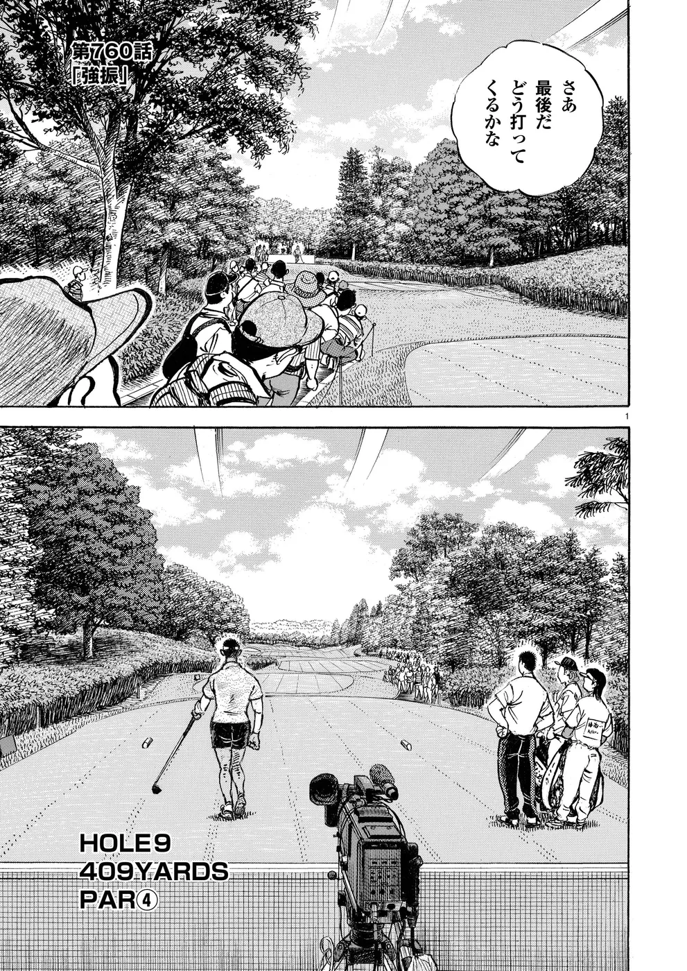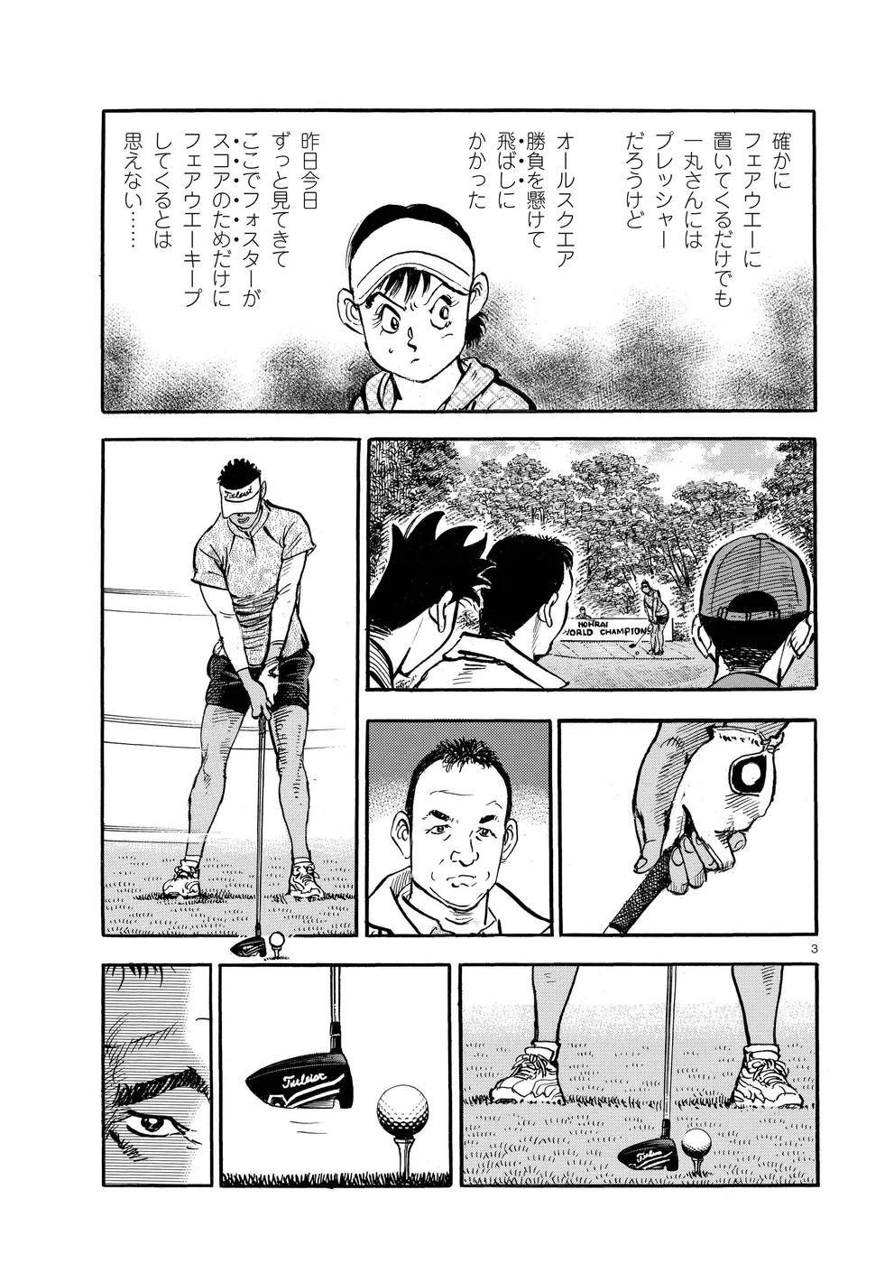 【第76巻あらすじ】ホーライワールドチャンピオンズで鳴海一丸と同組を回る米国人女子アマ・フォスターは、米軍で狙撃観測種を任じられていた帰還兵だった。フォスターと鳴海は、マッチプレーの様相を見せる激しい戦いを展開。だが、車の大きなクラクションの音を聞いた後から、フォスターのショットが乱れ始めた。フォスターは心的外傷後ストレス障害(PTSD)を抱えていた…。