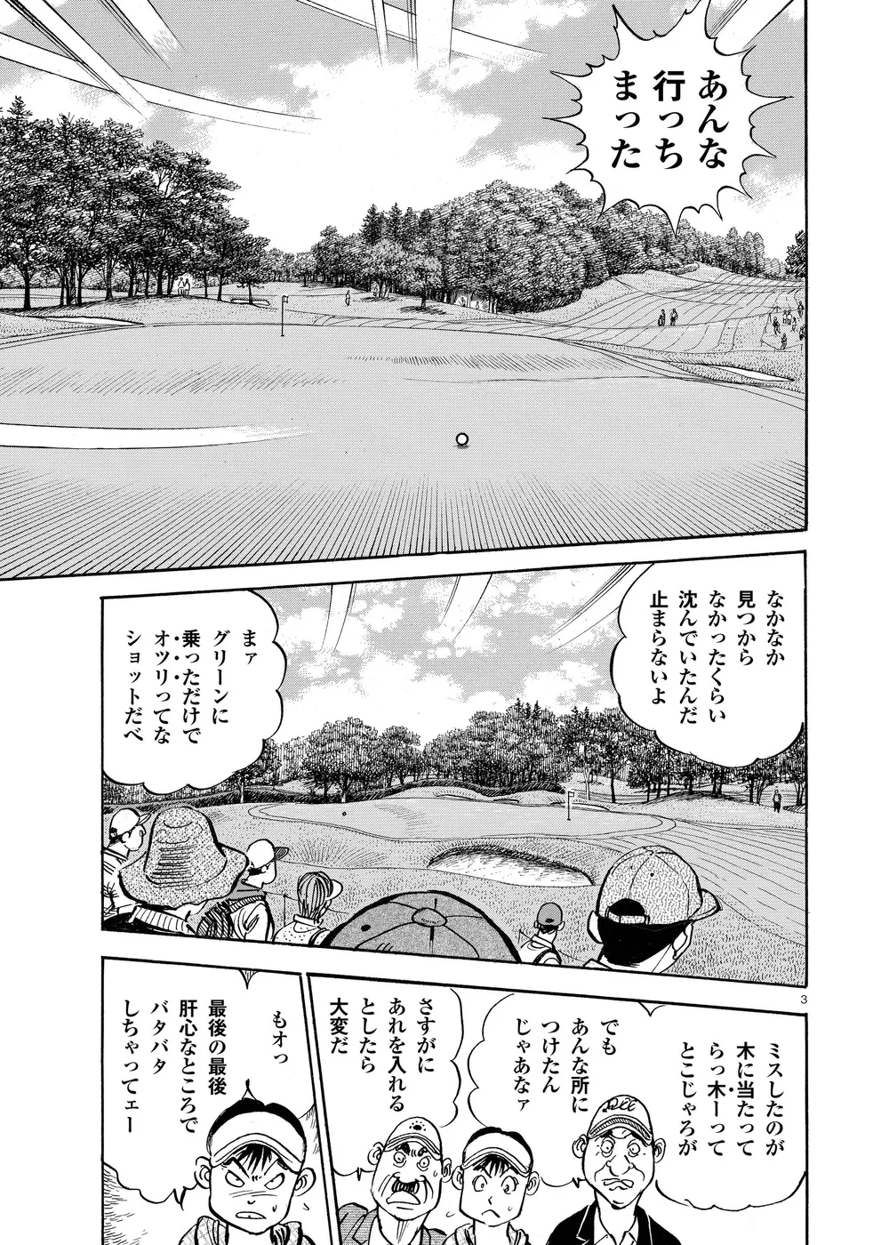 【第77巻あらすじ】ホーライワールドチャンピオンズで鳴海一丸とフォスターが繰り広げたマッチプレーさながらの戦いは、オールスクエアで終了。フォスターは上位で予選通過の成績だったが、左手首の負傷で決勝は棄権を決意。かたや一丸は、サンドウェッジのショットに違和感を持ち続けていた。打開策を模索する一丸だったが、調子が戻ることなくシーズン最終戦となる日本シリーズを迎えてしまうのだった。