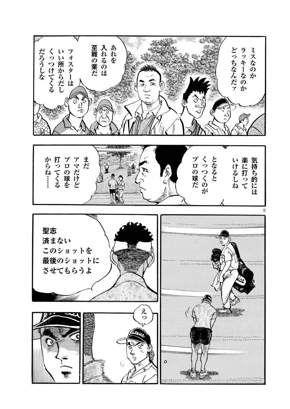 【第77巻あらすじ】ホーライワールドチャンピオンズで鳴海一丸とフォスターが繰り広げたマッチプレーさながらの戦いは、オールスクエアで終了。フォスターは上位で予選通過の成績だったが、左手首の負傷で決勝は棄権を決意。かたや一丸は、サンドウェッジのショットに違和感を持ち続けていた。打開策を模索する一丸だったが、調子が戻ることなくシーズン最終戦となる日本シリーズを迎えてしまうのだった。