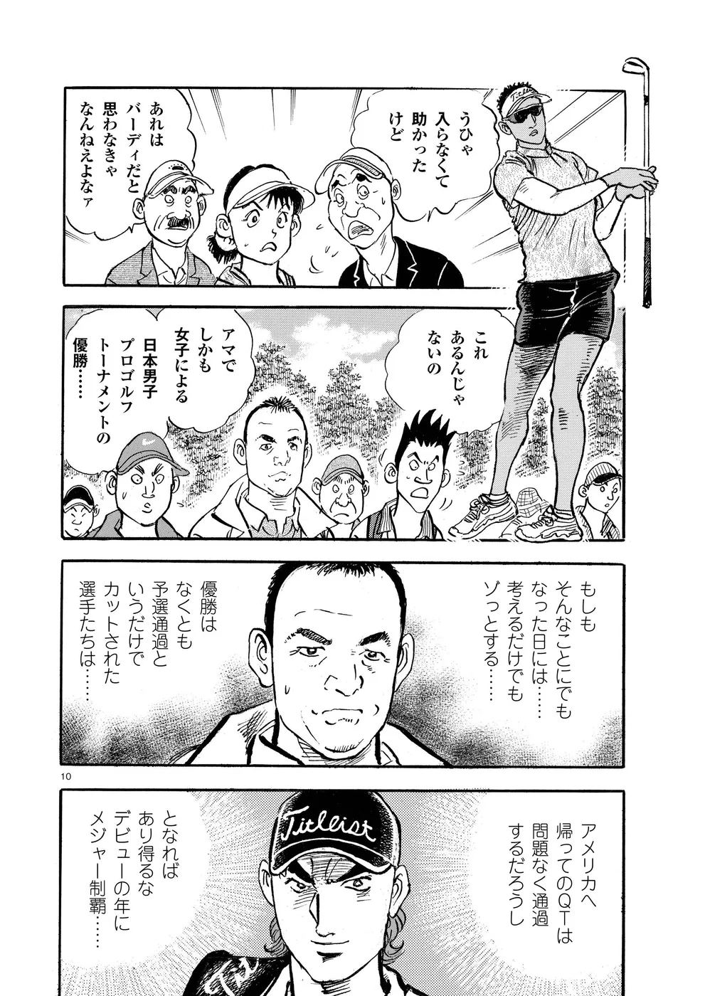 【第77巻あらすじ】ホーライワールドチャンピオンズで鳴海一丸とフォスターが繰り広げたマッチプレーさながらの戦いは、オールスクエアで終了。フォスターは上位で予選通過の成績だったが、左手首の負傷で決勝は棄権を決意。かたや一丸は、サンドウェッジのショットに違和感を持ち続けていた。打開策を模索する一丸だったが、調子が戻ることなくシーズン最終戦となる日本シリーズを迎えてしまうのだった。