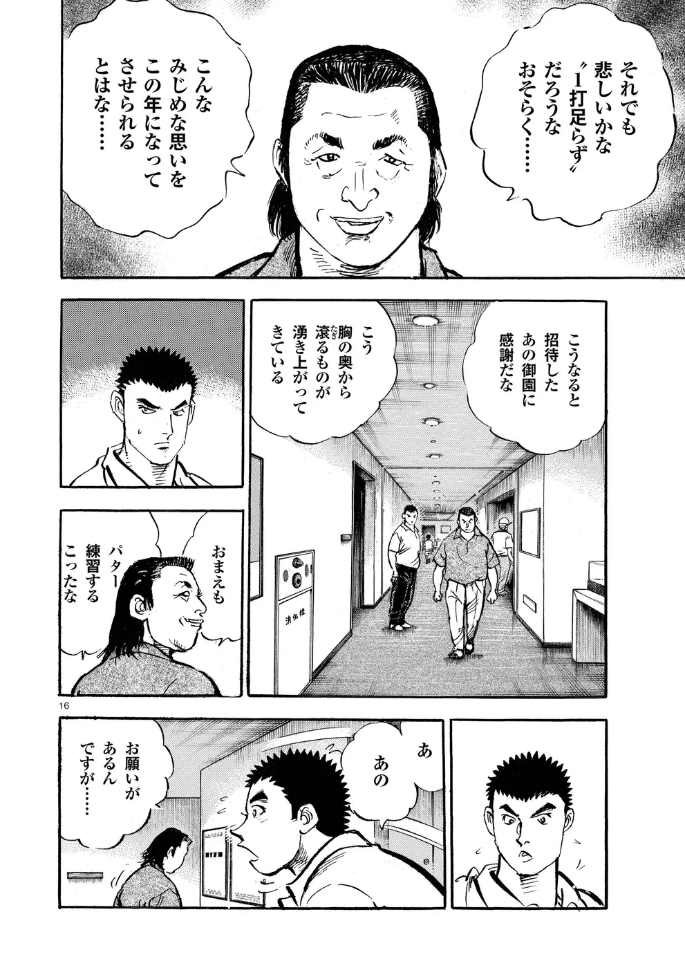 【第77巻あらすじ】ホーライワールドチャンピオンズで鳴海一丸とフォスターが繰り広げたマッチプレーさながらの戦いは、オールスクエアで終了。フォスターは上位で予選通過の成績だったが、左手首の負傷で決勝は棄権を決意。かたや一丸は、サンドウェッジのショットに違和感を持ち続けていた。打開策を模索する一丸だったが、調子が戻ることなくシーズン最終戦となる日本シリーズを迎えてしまうのだった。