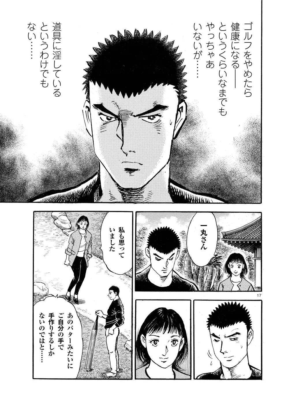 【第77巻あらすじ】ホーライワールドチャンピオンズで鳴海一丸とフォスターが繰り広げたマッチプレーさながらの戦いは、オールスクエアで終了。フォスターは上位で予選通過の成績だったが、左手首の負傷で決勝は棄権を決意。かたや一丸は、サンドウェッジのショットに違和感を持ち続けていた。打開策を模索する一丸だったが、調子が戻ることなくシーズン最終戦となる日本シリーズを迎えてしまうのだった。