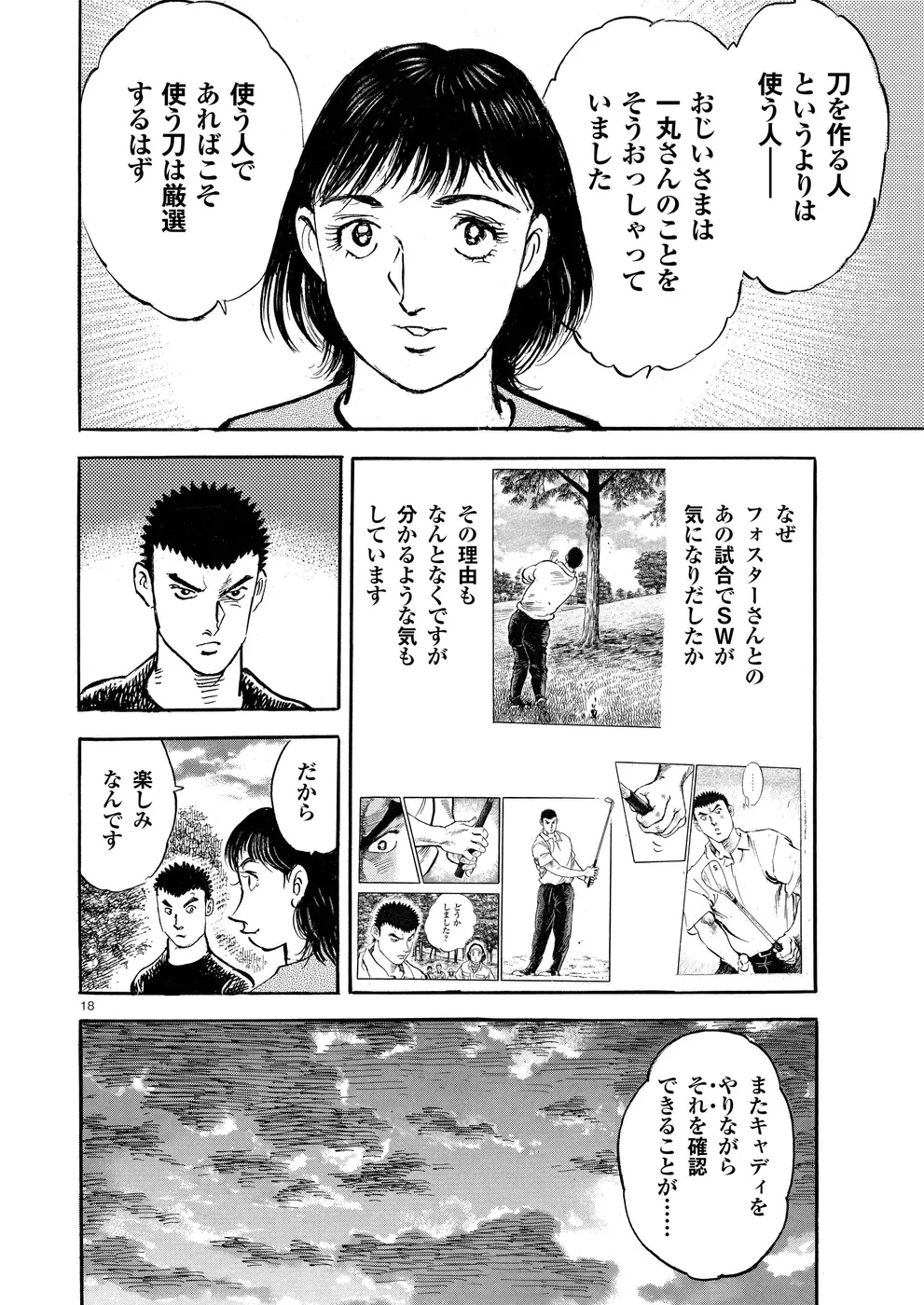 【第77巻あらすじ】ホーライワールドチャンピオンズで鳴海一丸とフォスターが繰り広げたマッチプレーさながらの戦いは、オールスクエアで終了。フォスターは上位で予選通過の成績だったが、左手首の負傷で決勝は棄権を決意。かたや一丸は、サンドウェッジのショットに違和感を持ち続けていた。打開策を模索する一丸だったが、調子が戻ることなくシーズン最終戦となる日本シリーズを迎えてしまうのだった。
