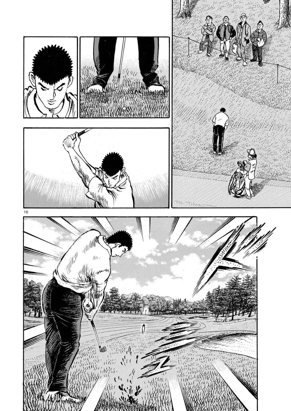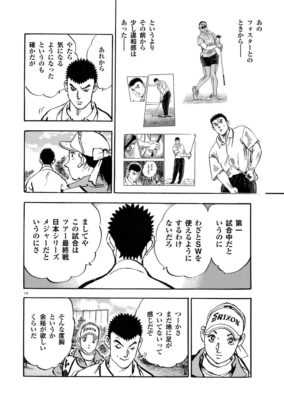【第77巻あらすじ】ホーライワールドチャンピオンズで鳴海一丸とフォスターが繰り広げたマッチプレーさながらの戦いは、オールスクエアで終了。フォスターは上位で予選通過の成績だったが、左手首の負傷で決勝は棄権を決意。かたや一丸は、サンドウェッジのショットに違和感を持ち続けていた。打開策を模索する一丸だったが、調子が戻ることなくシーズン最終戦となる日本シリーズを迎えてしまうのだった。