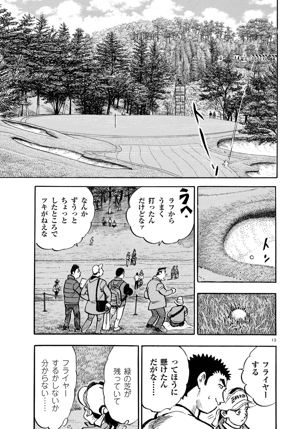 【第77巻あらすじ】ホーライワールドチャンピオンズで鳴海一丸とフォスターが繰り広げたマッチプレーさながらの戦いは、オールスクエアで終了。フォスターは上位で予選通過の成績だったが、左手首の負傷で決勝は棄権を決意。かたや一丸は、サンドウェッジのショットに違和感を持ち続けていた。打開策を模索する一丸だったが、調子が戻ることなくシーズン最終戦となる日本シリーズを迎えてしまうのだった。