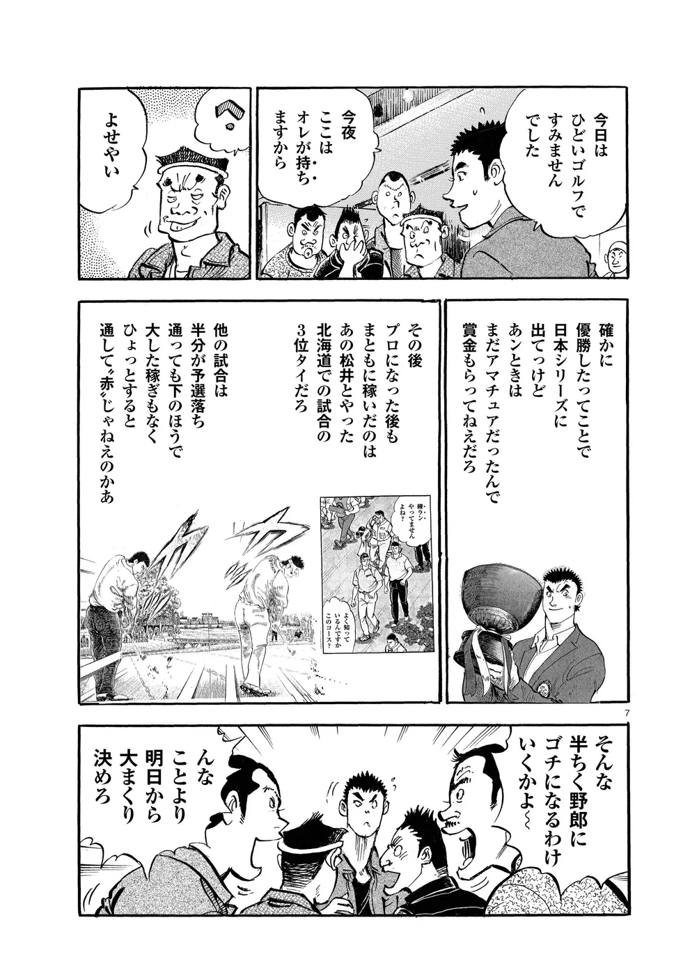 【第77巻あらすじ】ホーライワールドチャンピオンズで鳴海一丸とフォスターが繰り広げたマッチプレーさながらの戦いは、オールスクエアで終了。フォスターは上位で予選通過の成績だったが、左手首の負傷で決勝は棄権を決意。かたや一丸は、サンドウェッジのショットに違和感を持ち続けていた。打開策を模索する一丸だったが、調子が戻ることなくシーズン最終戦となる日本シリーズを迎えてしまうのだった。