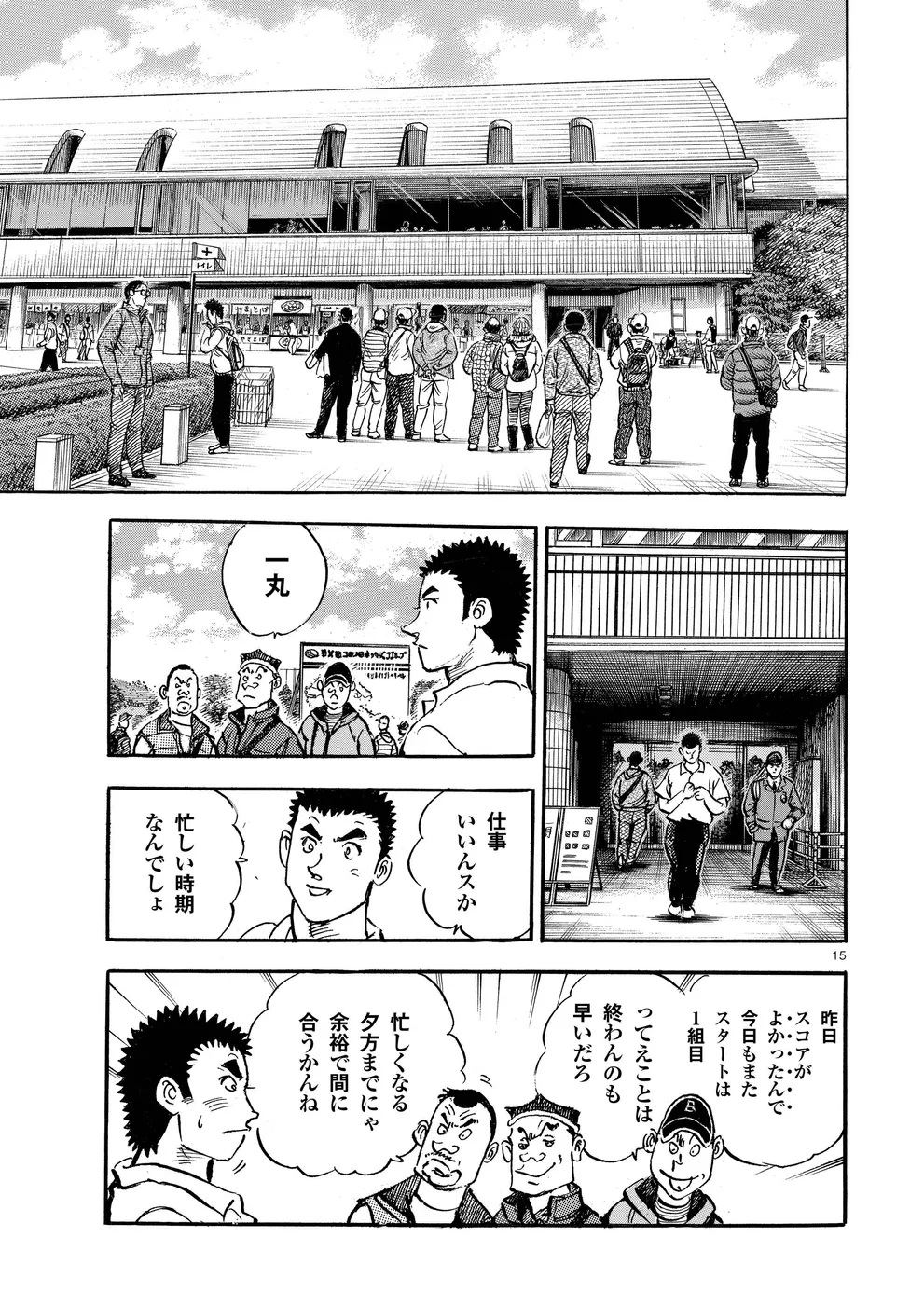 【第77巻あらすじ】ホーライワールドチャンピオンズで鳴海一丸とフォスターが繰り広げたマッチプレーさながらの戦いは、オールスクエアで終了。フォスターは上位で予選通過の成績だったが、左手首の負傷で決勝は棄権を決意。かたや一丸は、サンドウェッジのショットに違和感を持ち続けていた。打開策を模索する一丸だったが、調子が戻ることなくシーズン最終戦となる日本シリーズを迎えてしまうのだった。