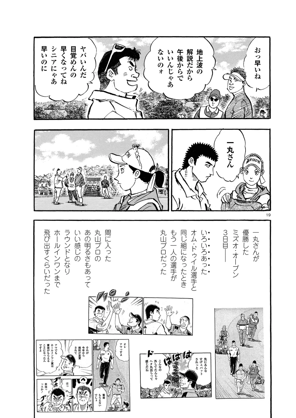 【第77巻あらすじ】ホーライワールドチャンピオンズで鳴海一丸とフォスターが繰り広げたマッチプレーさながらの戦いは、オールスクエアで終了。フォスターは上位で予選通過の成績だったが、左手首の負傷で決勝は棄権を決意。かたや一丸は、サンドウェッジのショットに違和感を持ち続けていた。打開策を模索する一丸だったが、調子が戻ることなくシーズン最終戦となる日本シリーズを迎えてしまうのだった。