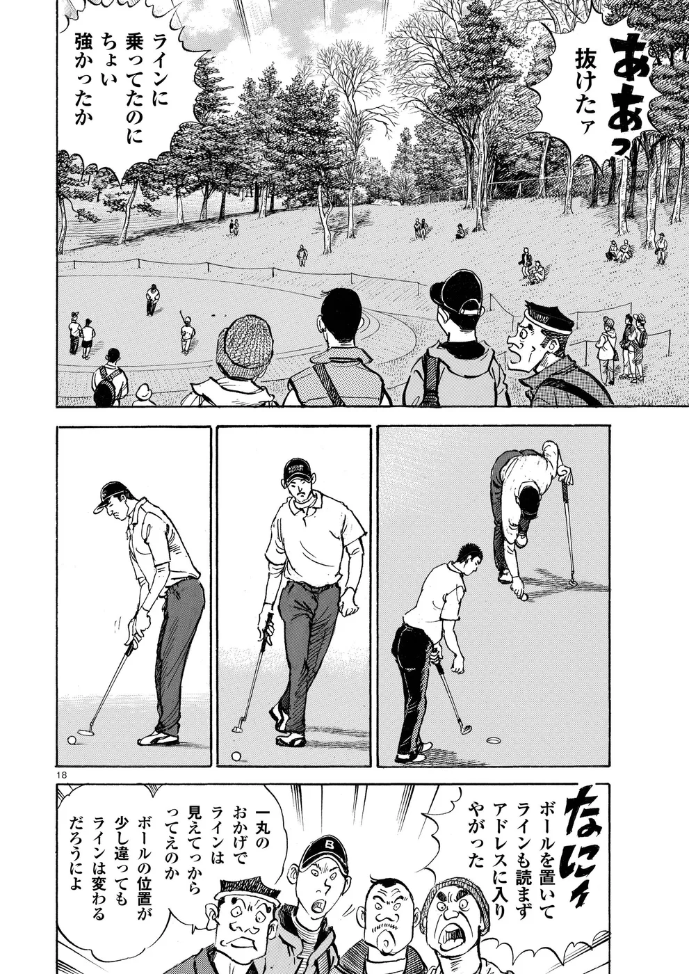 【第78巻あらすじ】シーズン最終戦、ゴルフ日本シリーズJTカップ。鳴海一丸は初日に大たたき、2日目も伸ばせず、最下位で3日目を回っていた。一見落ち着いてじっくりチャンスを待つゴルフをしているようにも見えるのだが、それはいつもの一丸の攻めではなかった。その姿は、プロゴルファーとしての己の在り方を悩んでいるようにも見えた。そして迎えた最終日…、一丸の表情に変化が!