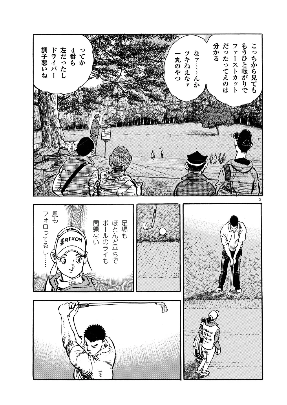 【第78巻あらすじ】シーズン最終戦、ゴルフ日本シリーズJTカップ。鳴海一丸は初日に大たたき、2日目も伸ばせず、最下位で3日目を回っていた。一見落ち着いてじっくりチャンスを待つゴルフをしているようにも見えるのだが、それはいつもの一丸の攻めではなかった。その姿は、プロゴルファーとしての己の在り方を悩んでいるようにも見えた。そして迎えた最終日…、一丸の表情に変化が!