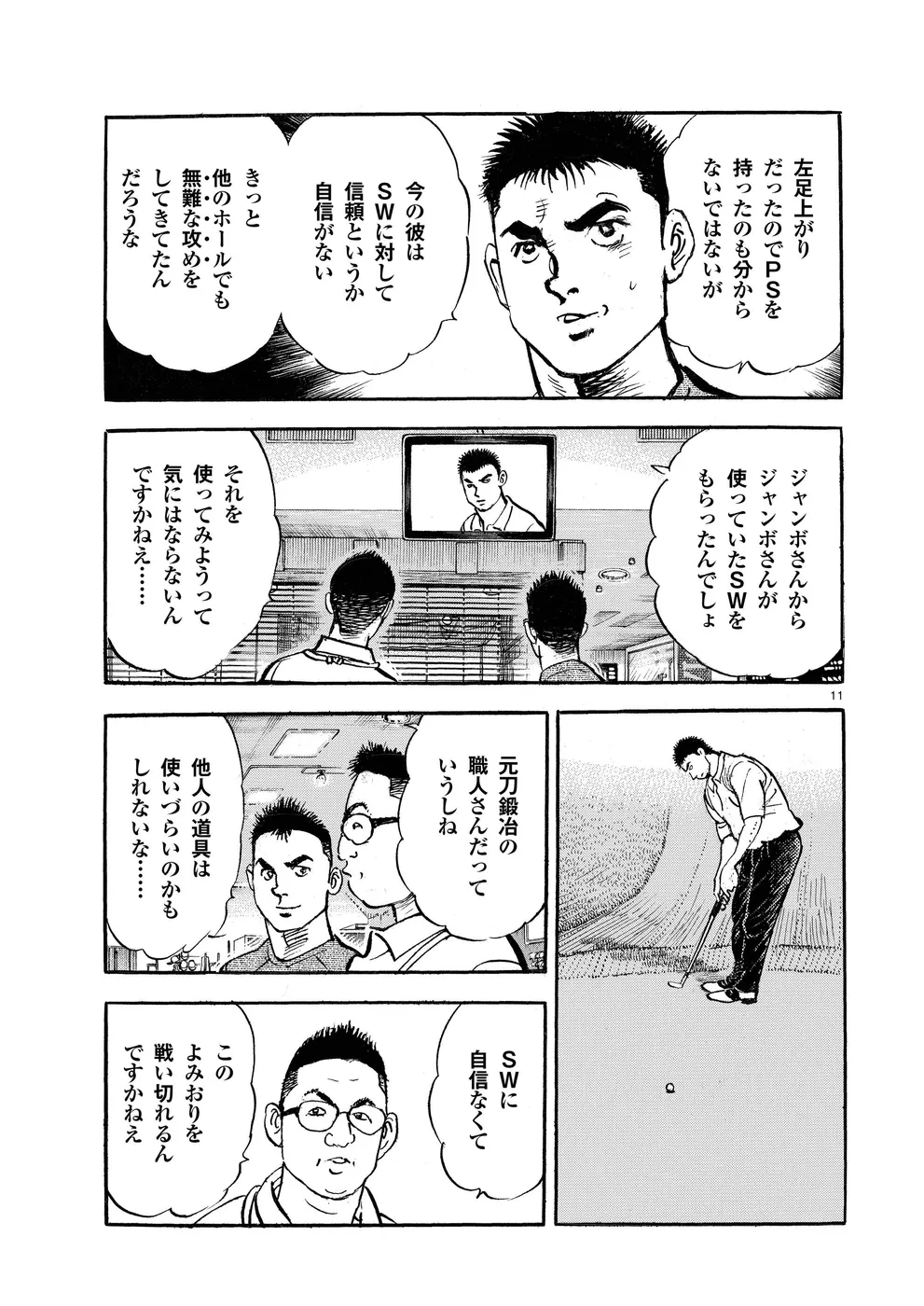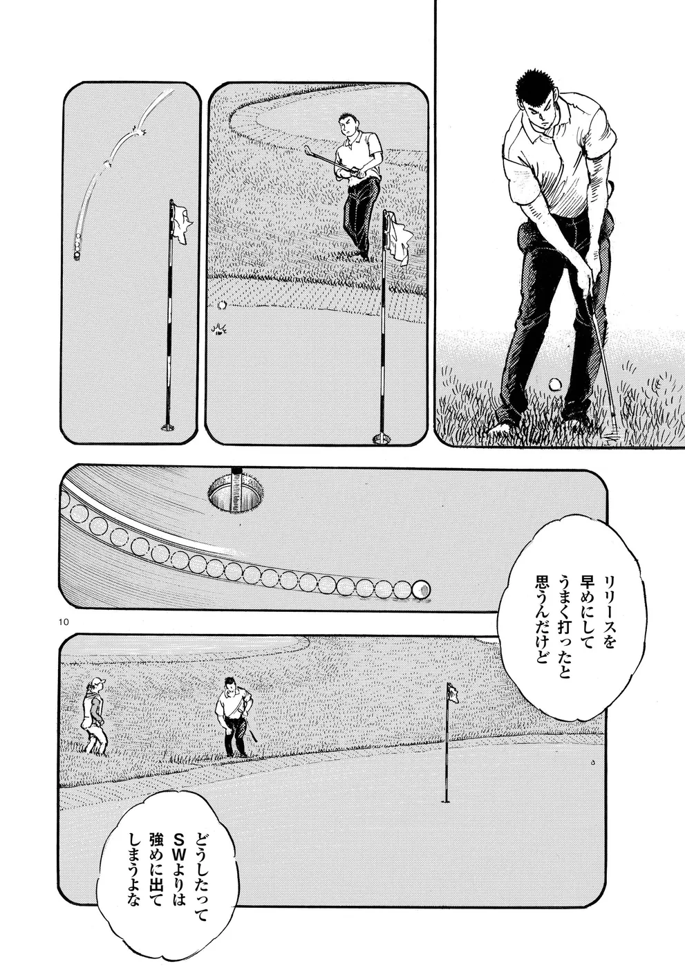 【第78巻あらすじ】シーズン最終戦、ゴルフ日本シリーズJTカップ。鳴海一丸は初日に大たたき、2日目も伸ばせず、最下位で3日目を回っていた。一見落ち着いてじっくりチャンスを待つゴルフをしているようにも見えるのだが、それはいつもの一丸の攻めではなかった。その姿は、プロゴルファーとしての己の在り方を悩んでいるようにも見えた。そして迎えた最終日…、一丸の表情に変化が!