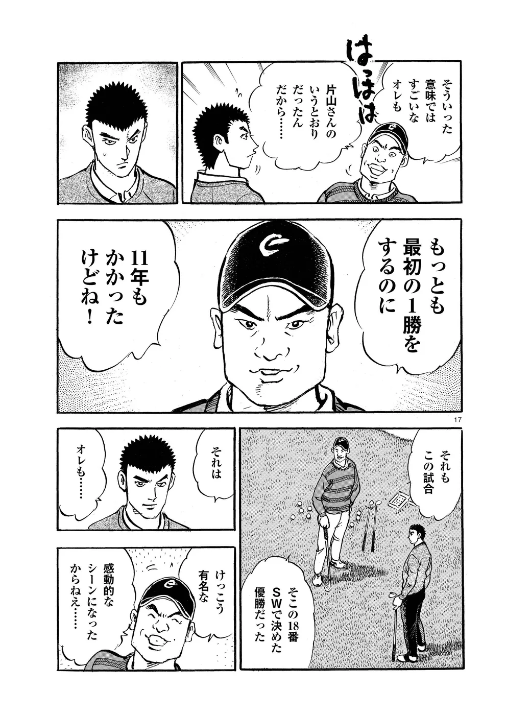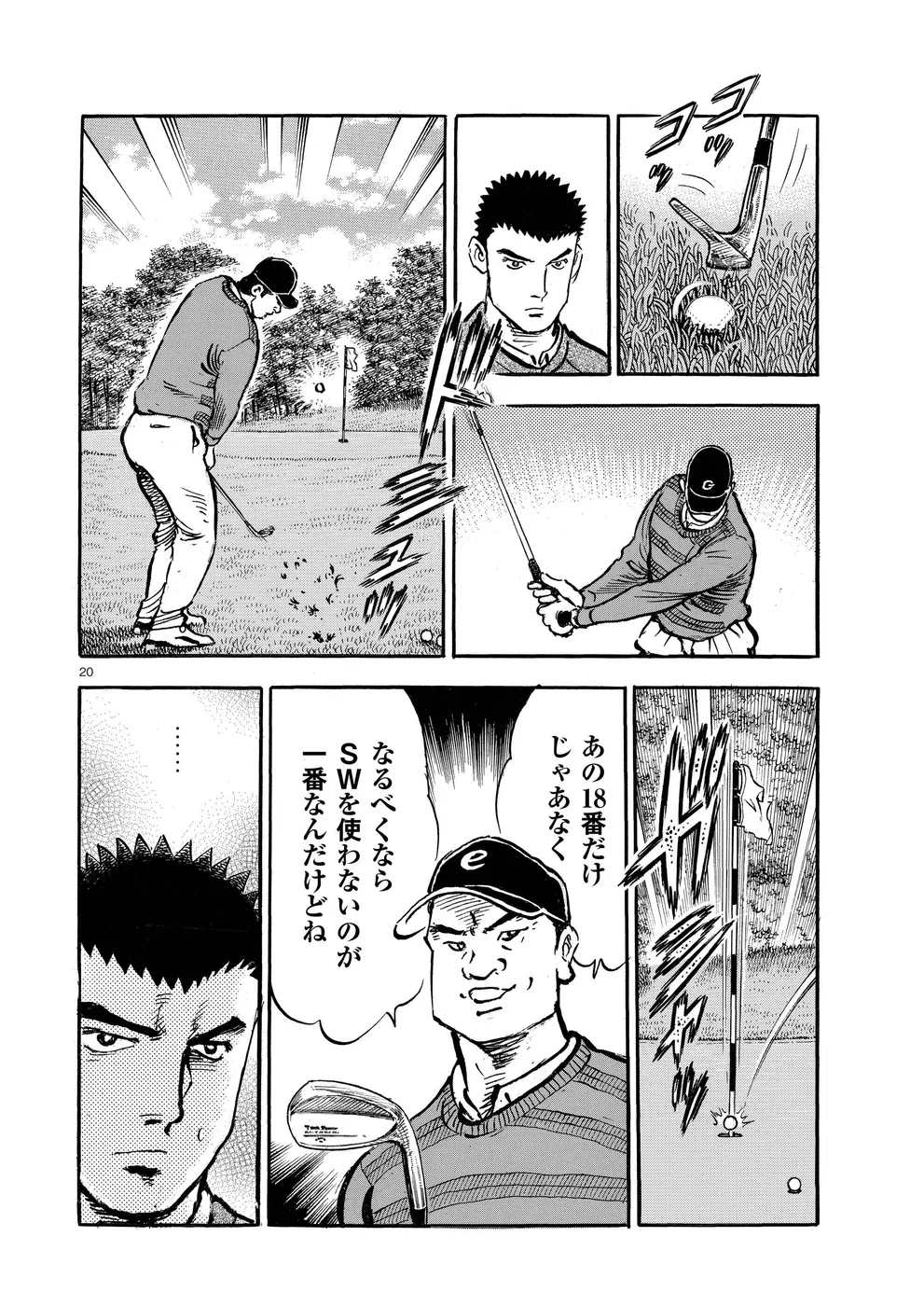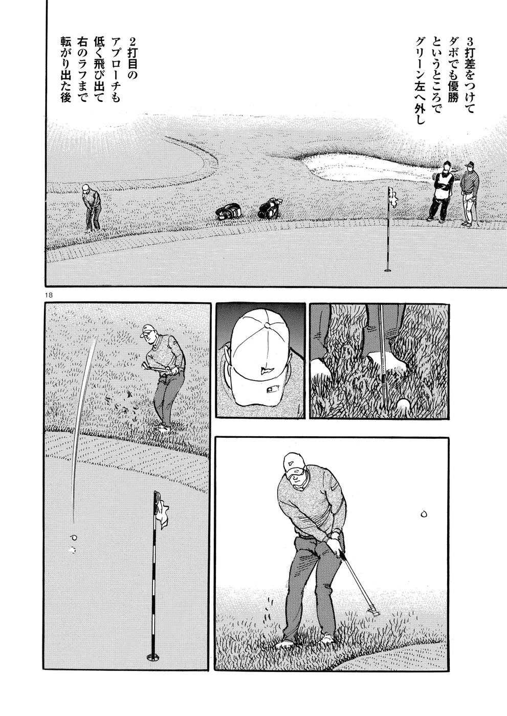 【第78巻あらすじ】シーズン最終戦、ゴルフ日本シリーズJTカップ。鳴海一丸は初日に大たたき、2日目も伸ばせず、最下位で3日目を回っていた。一見落ち着いてじっくりチャンスを待つゴルフをしているようにも見えるのだが、それはいつもの一丸の攻めではなかった。その姿は、プロゴルファーとしての己の在り方を悩んでいるようにも見えた。そして迎えた最終日…、一丸の表情に変化が!