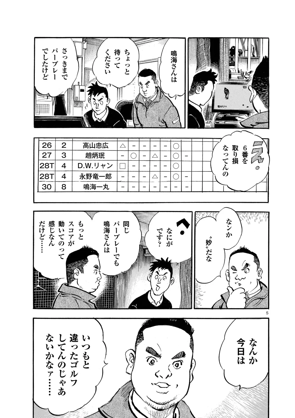【第78巻あらすじ】シーズン最終戦、ゴルフ日本シリーズJTカップ。鳴海一丸は初日に大たたき、2日目も伸ばせず、最下位で3日目を回っていた。一見落ち着いてじっくりチャンスを待つゴルフをしているようにも見えるのだが、それはいつもの一丸の攻めではなかった。その姿は、プロゴルファーとしての己の在り方を悩んでいるようにも見えた。そして迎えた最終日…、一丸の表情に変化が!