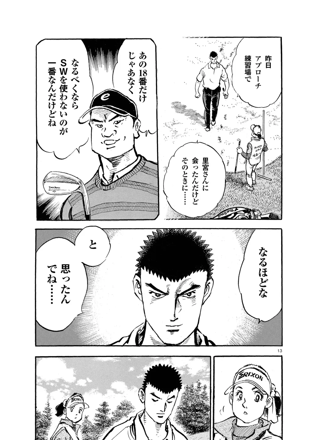 【第78巻あらすじ】シーズン最終戦、ゴルフ日本シリーズJTカップ。鳴海一丸は初日に大たたき、2日目も伸ばせず、最下位で3日目を回っていた。一見落ち着いてじっくりチャンスを待つゴルフをしているようにも見えるのだが、それはいつもの一丸の攻めではなかった。その姿は、プロゴルファーとしての己の在り方を悩んでいるようにも見えた。そして迎えた最終日…、一丸の表情に変化が!
