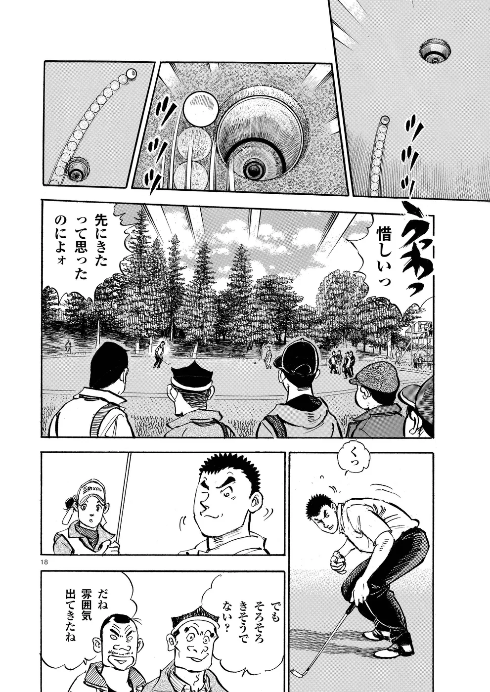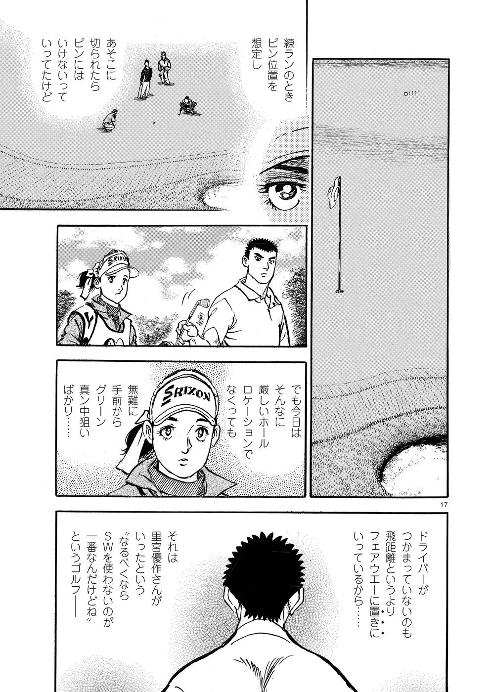 【第78巻あらすじ】シーズン最終戦、ゴルフ日本シリーズJTカップ。鳴海一丸は初日に大たたき、2日目も伸ばせず、最下位で3日目を回っていた。一見落ち着いてじっくりチャンスを待つゴルフをしているようにも見えるのだが、それはいつもの一丸の攻めではなかった。その姿は、プロゴルファーとしての己の在り方を悩んでいるようにも見えた。そして迎えた最終日…、一丸の表情に変化が!