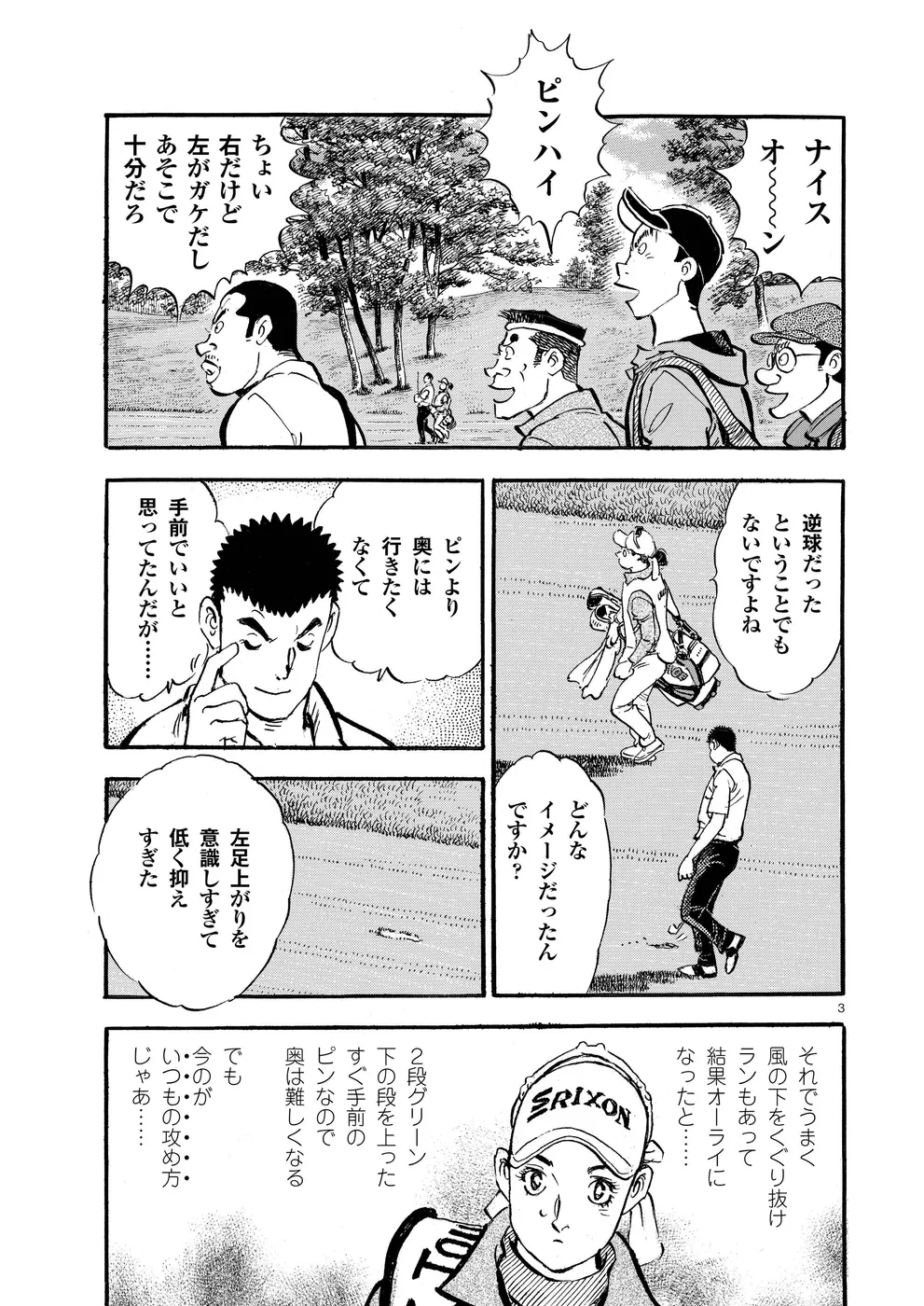 【第78巻あらすじ】シーズン最終戦、ゴルフ日本シリーズJTカップ。鳴海一丸は初日に大たたき、2日目も伸ばせず、最下位で3日目を回っていた。一見落ち着いてじっくりチャンスを待つゴルフをしているようにも見えるのだが、それはいつもの一丸の攻めではなかった。その姿は、プロゴルファーとしての己の在り方を悩んでいるようにも見えた。そして迎えた最終日…、一丸の表情に変化が!