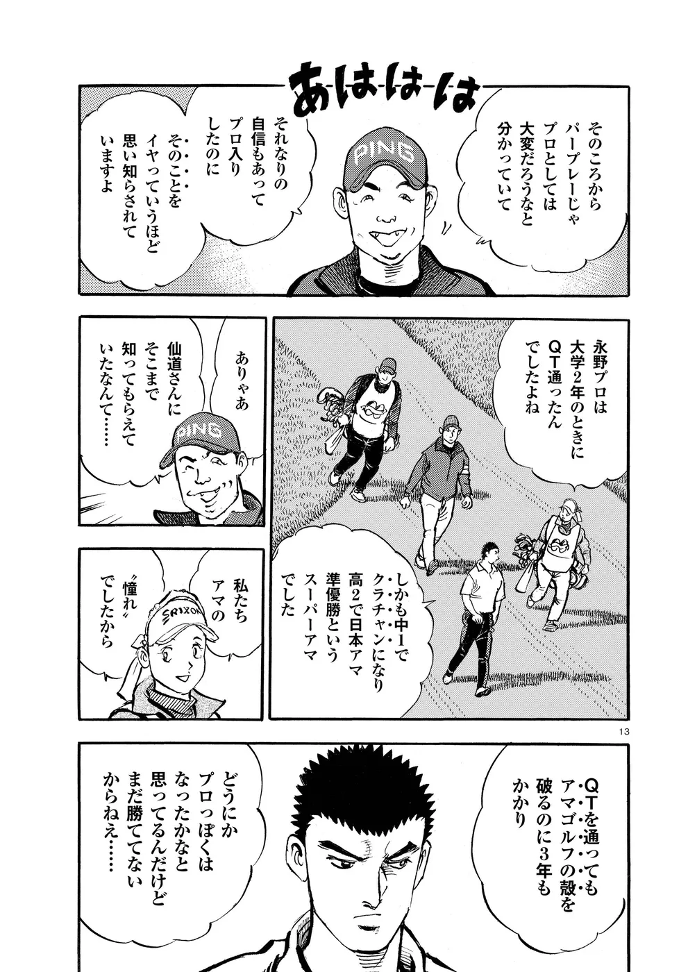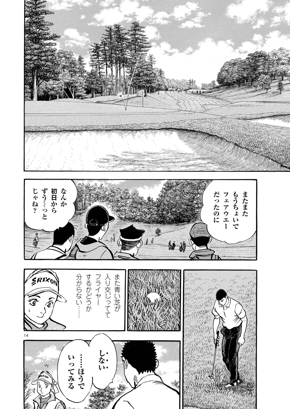 【第78巻あらすじ】シーズン最終戦、ゴルフ日本シリーズJTカップ。鳴海一丸は初日に大たたき、2日目も伸ばせず、最下位で3日目を回っていた。一見落ち着いてじっくりチャンスを待つゴルフをしているようにも見えるのだが、それはいつもの一丸の攻めではなかった。その姿は、プロゴルファーとしての己の在り方を悩んでいるようにも見えた。そして迎えた最終日…、一丸の表情に変化が!