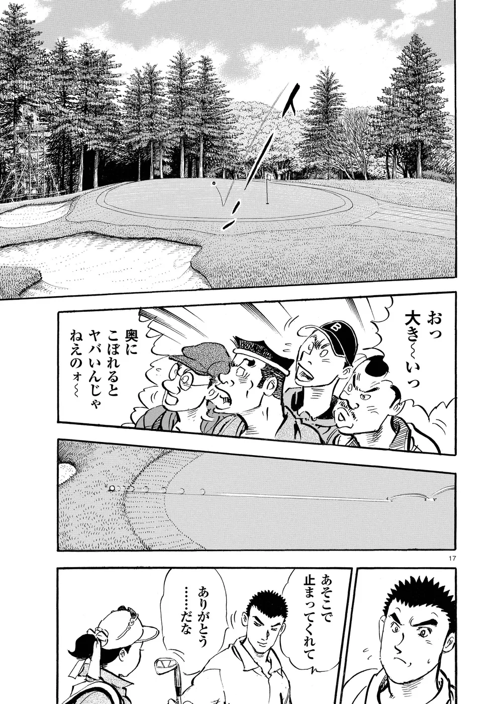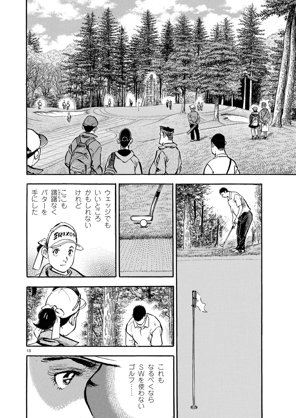 【第78巻あらすじ】シーズン最終戦、ゴルフ日本シリーズJTカップ。鳴海一丸は初日に大たたき、2日目も伸ばせず、最下位で3日目を回っていた。一見落ち着いてじっくりチャンスを待つゴルフをしているようにも見えるのだが、それはいつもの一丸の攻めではなかった。その姿は、プロゴルファーとしての己の在り方を悩んでいるようにも見えた。そして迎えた最終日…、一丸の表情に変化が!