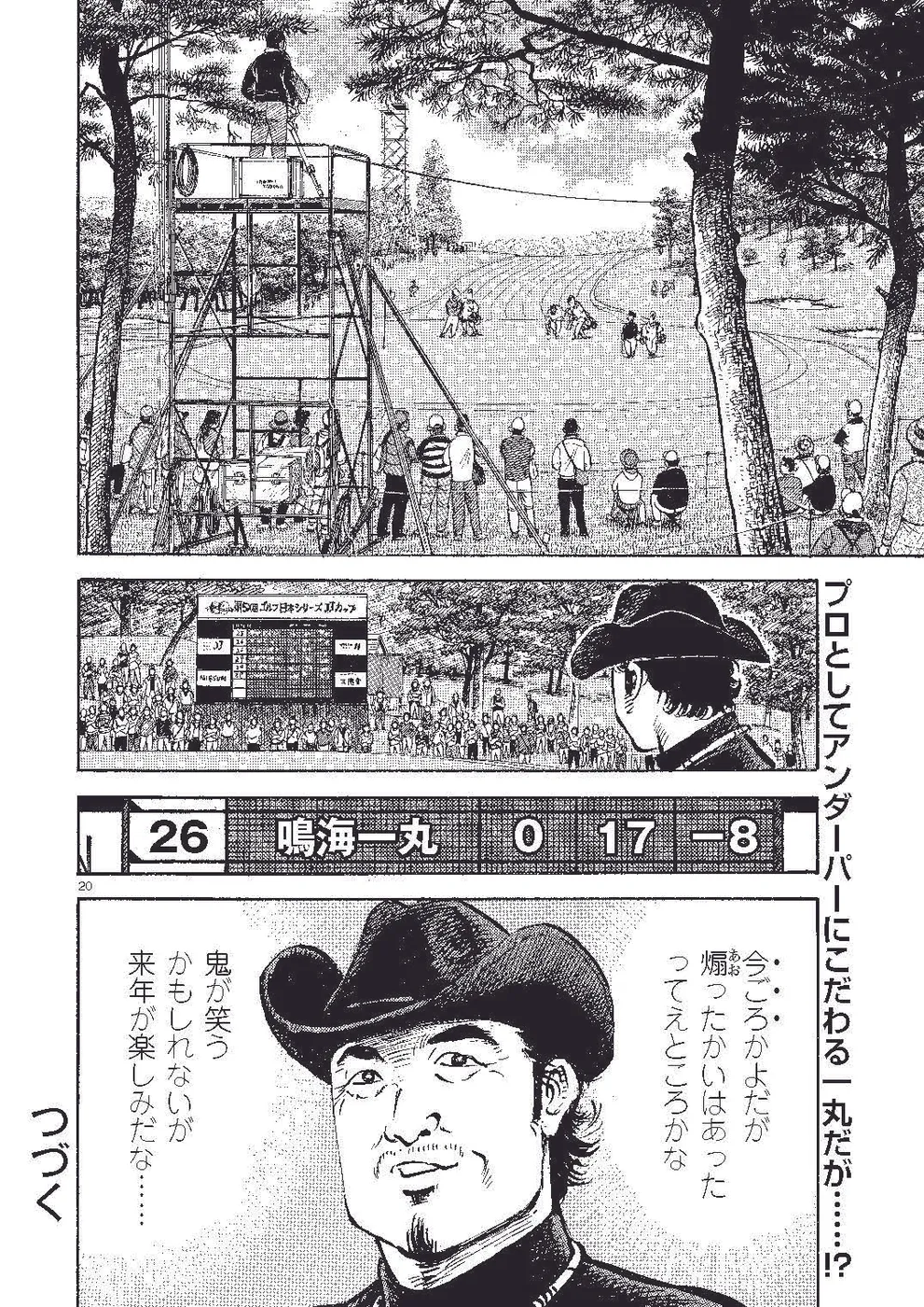 【第79巻あらすじ】プロゴルファーとして臨んだゴルフ日本シリーズJTカップで、最終日にようやく自分のゴルフスタイルを見つけ出し、イーブンパーまでスコアを戻してシーズンを終えた鳴海一丸。オフに入ると早速サンドウェッジ(SW)の自作、厳寒の釧路でのキャンプと、次のシーズンに向け準備を整えていた。だが、初ラウンドがシーズン開幕直前という状態で迎えた初戦、いきなり練習場でジャンボのSWでの技に見入られてしまった!